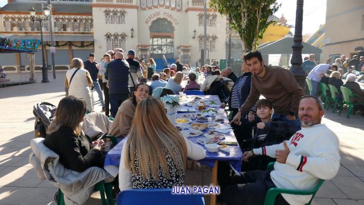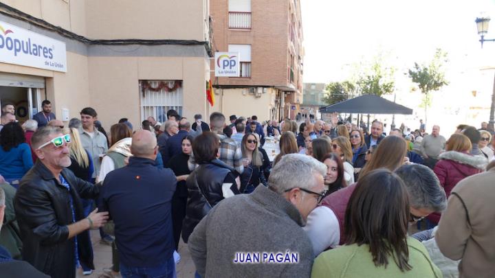 El PP de La Unión celebró con sus afiliados, a los que se sumaron algunos simpatizantes y amigos, la bienvenida navideña con un gran encuentro que tuvo como primer capítulo el almuerzo con variedad de productos, incluidos los que salían de la plancha y un arroz, para después culminar la convivencia bailando al ritmo del dúo 'Serendipity', que actuaba por la tarde en el escenario de la plaza de Joaquín Costa.
