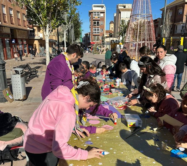 El grupo scout de Nuestra Señora de los Dolores coordinó el OJE los talleres navideños que se celebraron en la matinal del domingo en la plaza de Joaquín Costa dentro de la programación municipal y que también incluyó pintacaras y degustación de perritos calientes, entre otros alicientes.