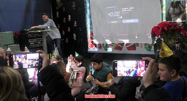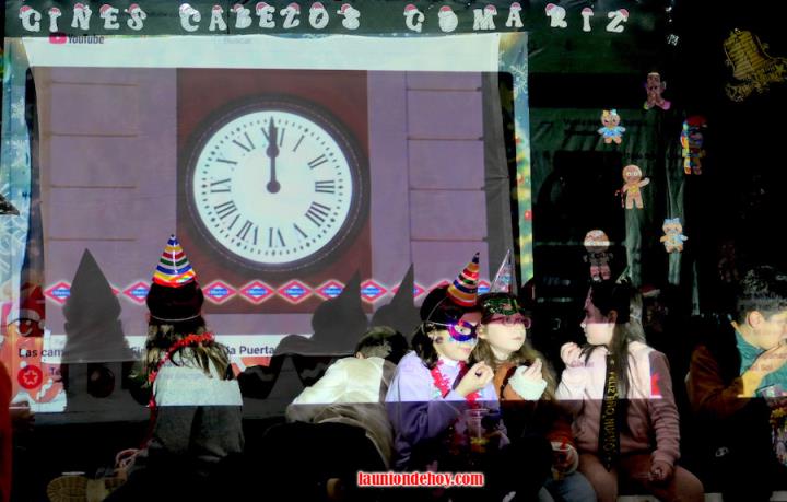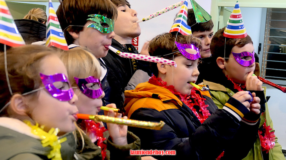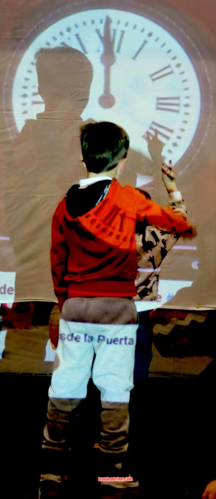 El primer capítulo estuvo centro en los chavales, siendo el epicentro las 12 campanadas, que se llevaron a cabo, sobre las siete y media de la tarde, con una proyección del reloj de la Puerta del Sol de Madrid sobre el escenario y tras el reparto de las bolsas de cotillón y de vasos con 12 gusanitos, que alguno cambió por chuches. Participaron unos cuarenta niños.
