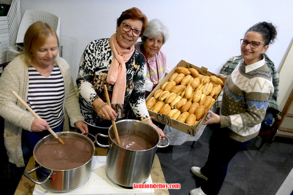 La lluvia hizo aparición horas antes de lo que habían anunciado los expertos de la AMET, pero ello no era motivo para aplazar las fiesta de preuvas de Roche, pues la pedanía dispone de un estupendo centro social con amplio salón de actos, que se convirtió totalmente en el marco de la celebración, situándose la barra de la cantina en la entrada.