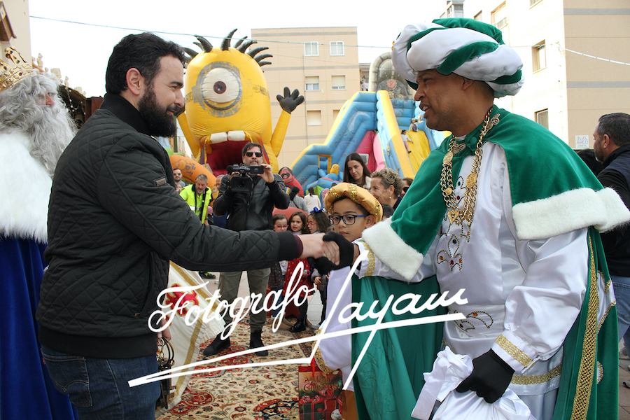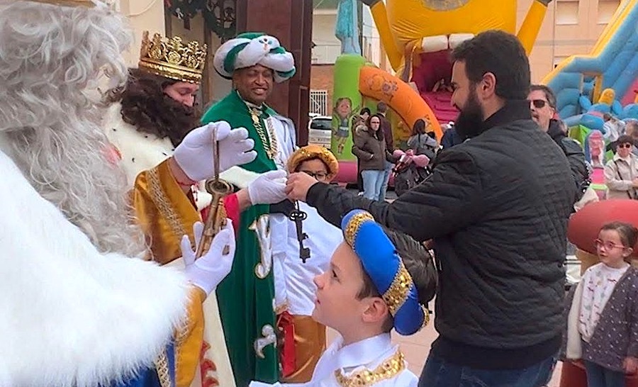 Melchor, Gaspar y Baltasar han entrado en la ciudad minera por la estación de FEVE, para después trasladarse en trenecito a la plaza de Joaquín Costa, donde han recibido, de manos del alcalde, Joaquín Zapata, las llaves de las casas del municipio para facilitarles que puedan esta noche ir dejando los regalos.