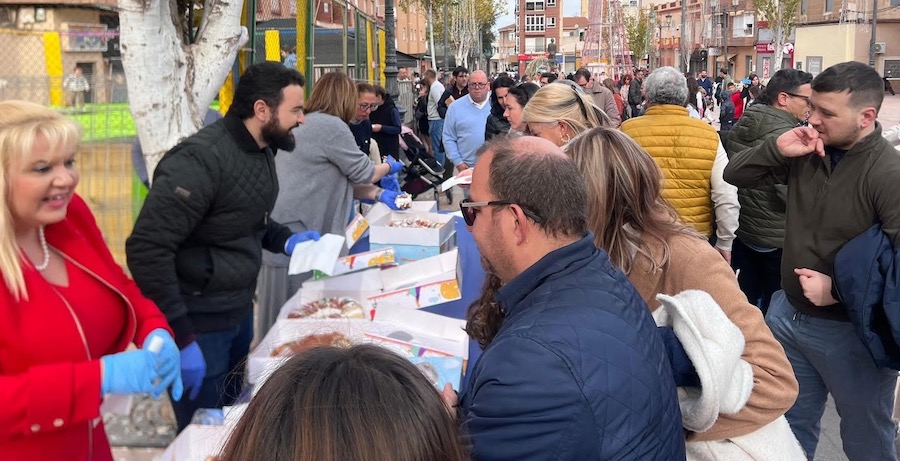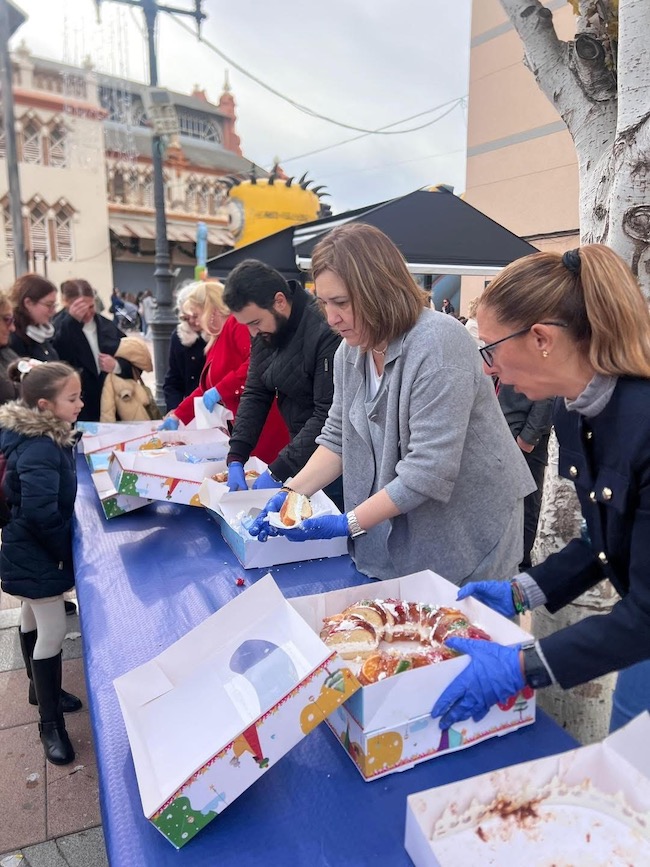 En la plaza ha tenido lugar un reparto gratuito de porciones de roscones de reyes por parte de integrantes del equipo de gobierno municipal.