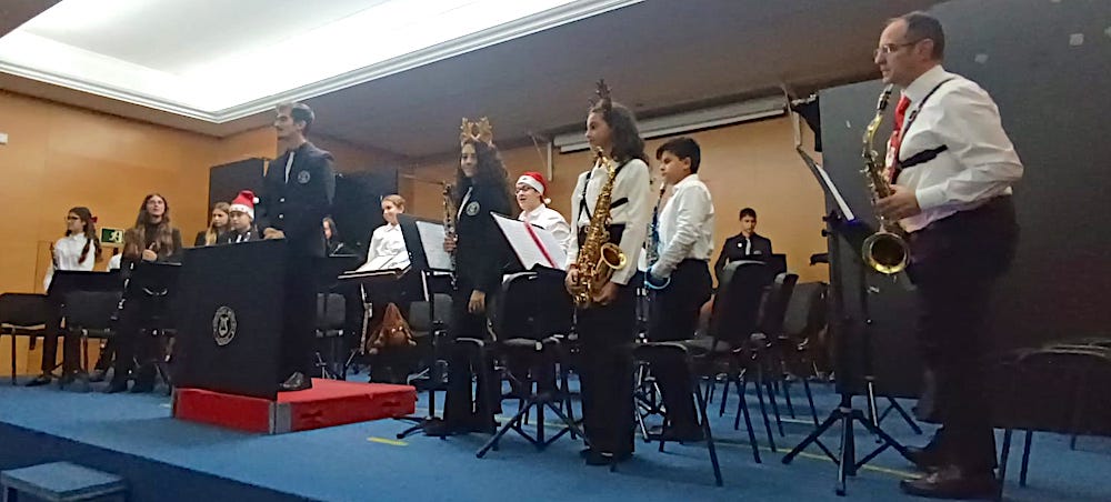 'Don Pajarita', del maestro Ferré Ferrán; 'Concierto de batería', de Larry Neck; y la 'Marcha Radetzky', de Johann Strauss (padre), fueron las propuestas que ofreció la orquesta AMLU, aderezadas por los villancicos de 'Rodolfo, el reno', 'Campanas sobre campanas' y 'Noche de paz', con el color de los más jóvenes alumnos de la escuela. Luis González Marín dirigió a la banda titular y Ricardo Fresno García a la banda de la escuela en una actuación que cambió de marco debido a las obras que se están acometiendo en el Mercado Antiguo.