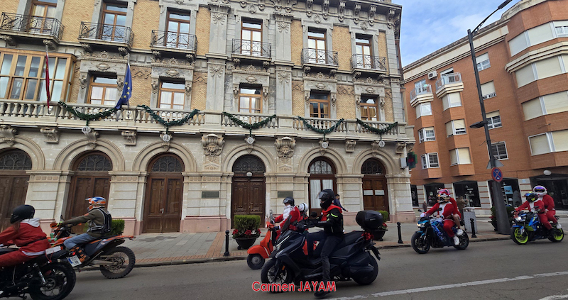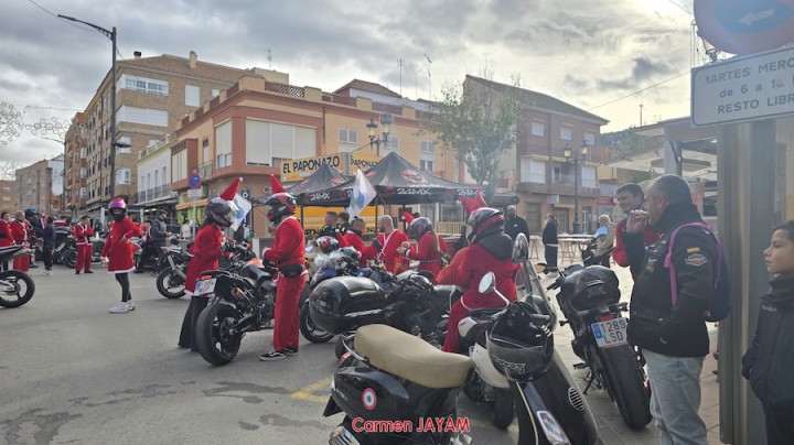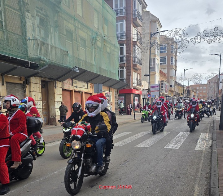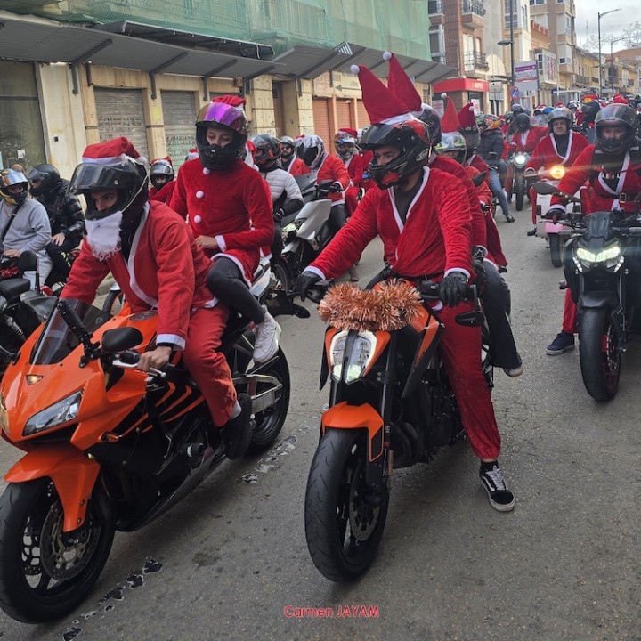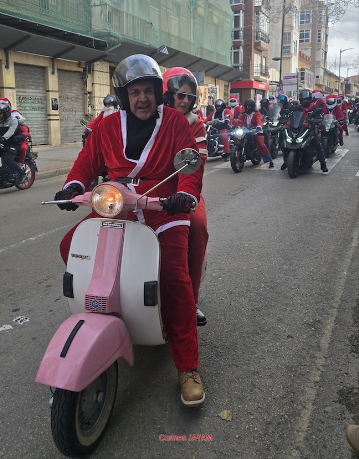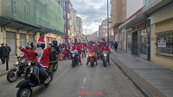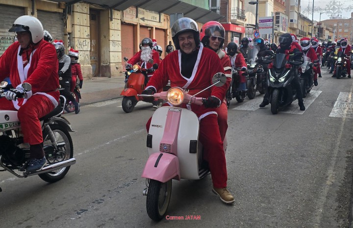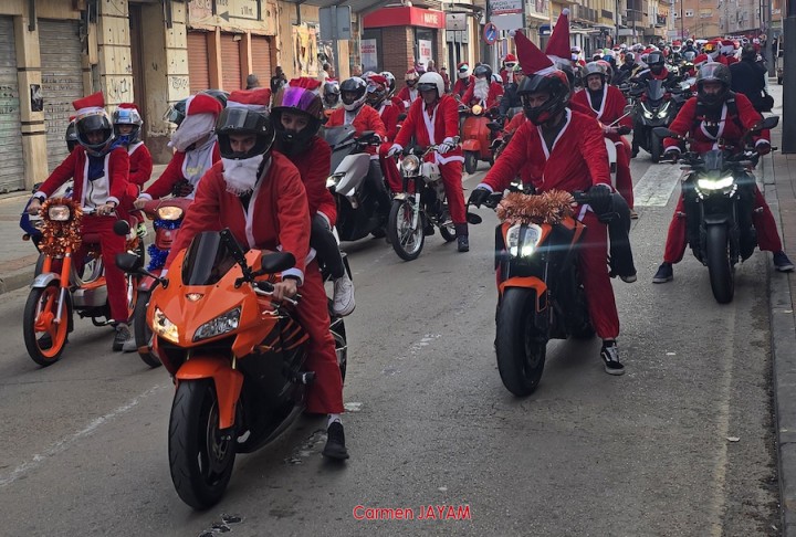 Muchos iban ataviados con el vestuario blanquirrojo y algunos con las emblemáticas barbas blancas y gorros, con guinaldas en las motos, además de un par con cajas de regalos.