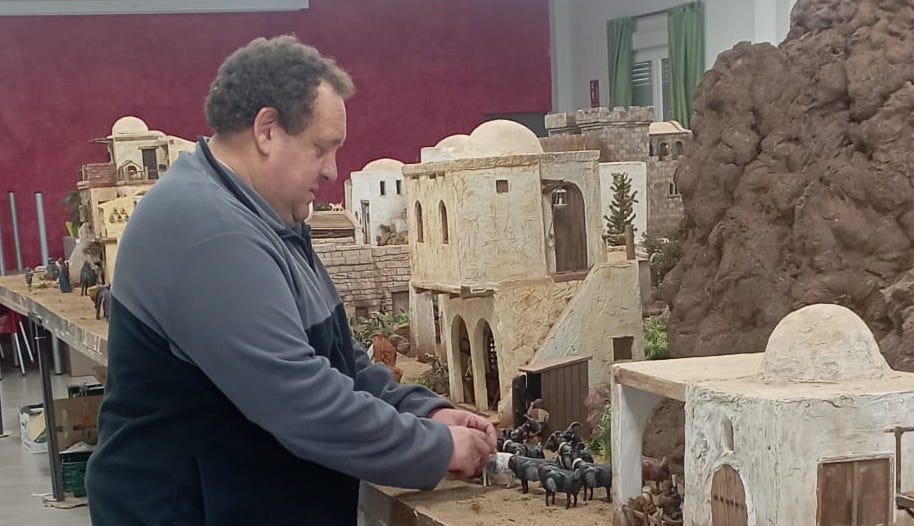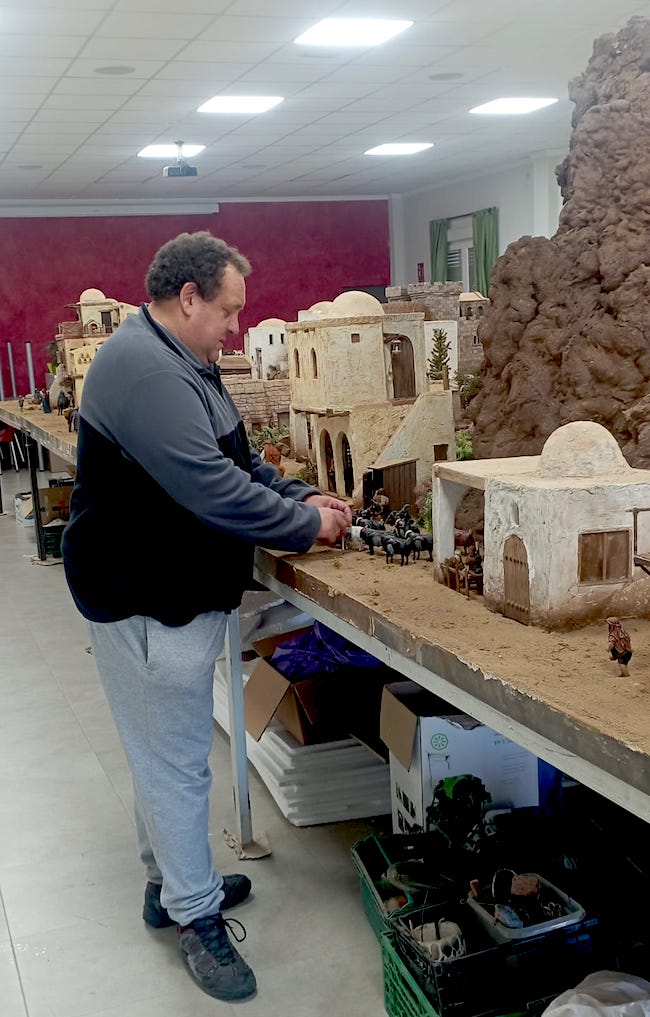 José Gabriel Rosique, director de la Agrupación Musical La Unión, forma parte del equipo de voluntarios que cada año monta el gran belén de El Albujón (Cartagena), que cuenta con más de dos mil figuras y que comenzó a montarse hace 31 años y que en 2014 superó las consecuencias de un incendio. El músico de La Unión también ha impartido talleres de belenismo con los chavales en las jornadas previas de su inauguración. Puede visitarse todos los días de Navidad.