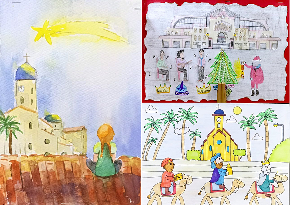 Los epicentros navideños de la actividad social de Roche, Portmán y de la urbana La Unión lucen las numerosas postales y dibujos elaborados por escolares del municipio.
