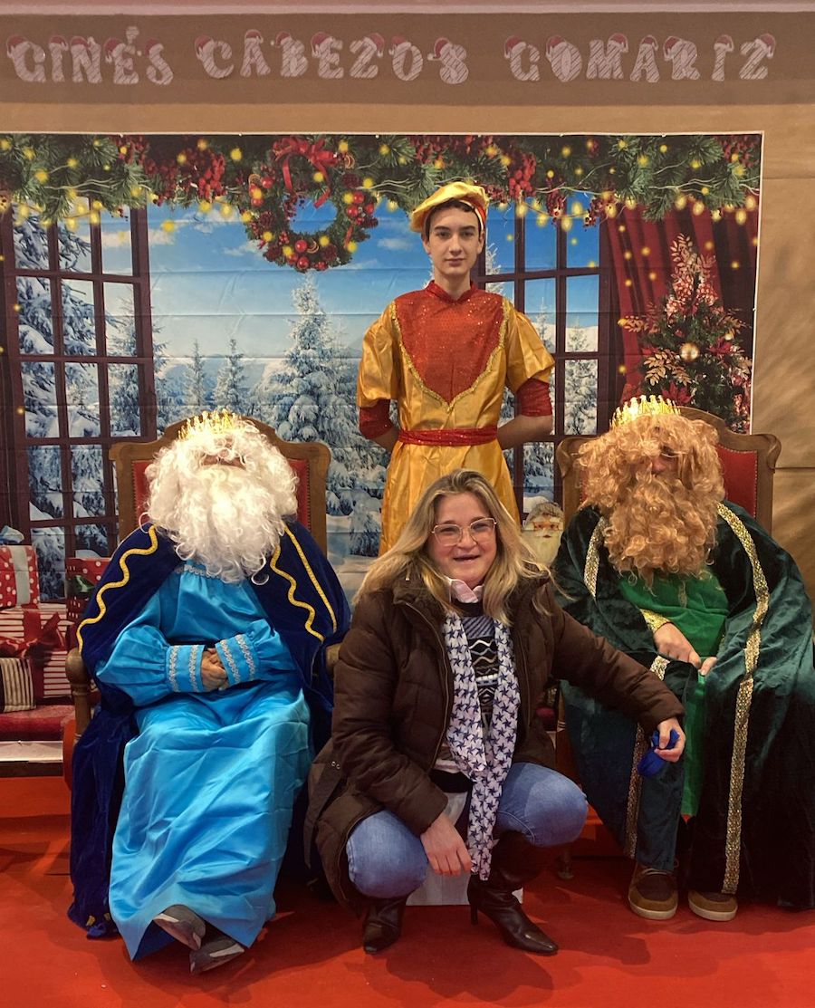 La pedánea, Maribel Laínez, posa con los Magos de Oriente y un paje