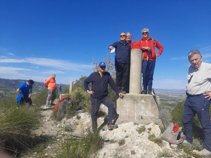 "Ruta bastante exigente, sobre todo en su principio, poco definido y con un desnivel importante, como dice nuestro presidente, nada que el grupo no sea capaz de hacer", indica el grupo, al que se observa en la foto superior junto a una señal que tiene un letrado del Instituto Geográfico que avisa que la destrucción de la misma está penada por la Ley.