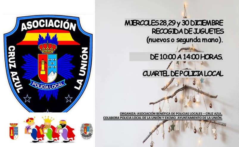 ‘Cruz Azul’, con la colaboración de la Policía Local y del Ayuntamiento de La Unión, organiza una recogida de juguetes nuevos o usados en buen estado con destino a niños de familias necesitadas. Las donaciones se pueden efectuar en el cuartel de la plaza Periodista García Mateos de 10 a 14 horas desde este miércoles y hasta el viernes.
