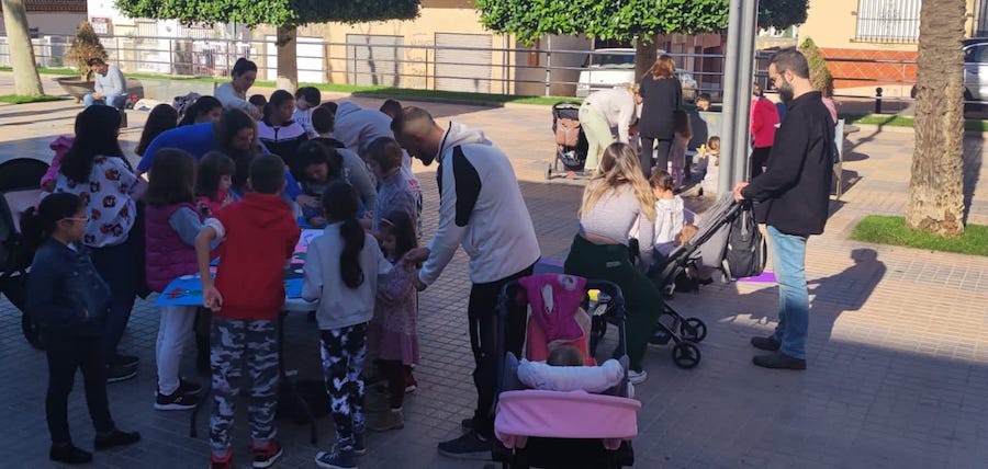 La plaza de la Iglesia de la ciudad de La Unión atrajó a numerosos niños para, entre otros talleres, la elaboración de tarjetas de Navidad, que después llevaron a sus padres y abuelos.