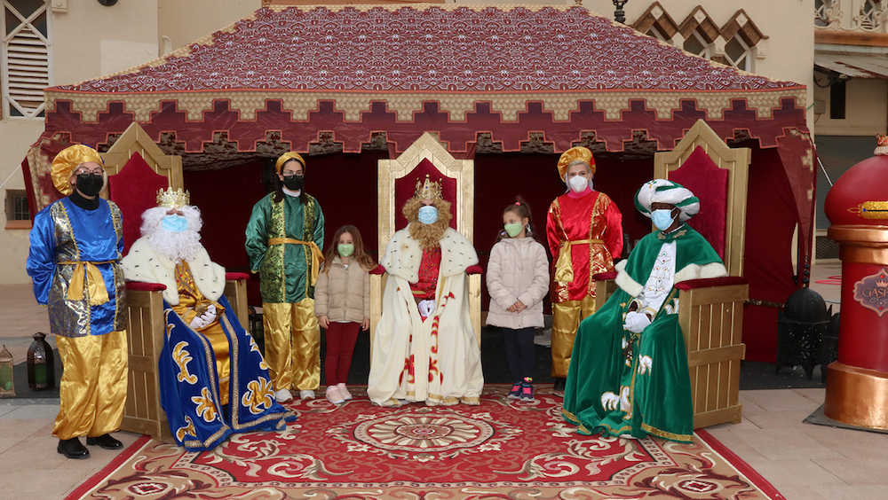 La primera teniente de alcalde del Ayuntamiento, Elena Lozano, ha recibido a sus (enmascarados, por la situación pandémica) majestades de Oriente, en la plaza de Joaquín Costa, entregándoles las llaves (de diferentes colores según la población de La Unión, Portmán y Roche) de las casas del municipio para recoger las llaves de todas las casa del municipio para que esta noche puedan llevar a los niños los regalos que han pedido.