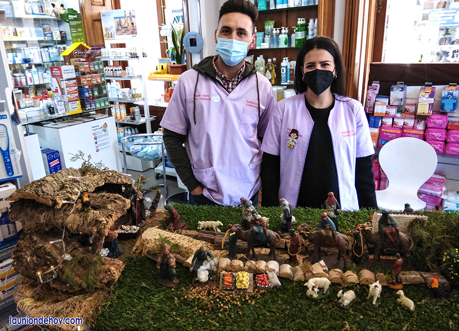Nacimiento montado en la farmacia de María del Carmen Carricondo, en la esquina de la Casa del Piñón de La Unión, que este año ha cambiado de ubicación dentro del establecimiento.