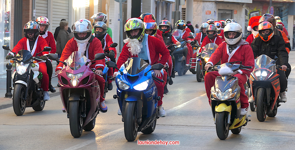 Un centenar de motos recorrieron la ciudad de La Unión este domingo en la quinta edición de la 'Papanoelada', en la que pilotos y acompañantes lucieron vestuarios propios de la versión más popular del personaje de Santa Claus.