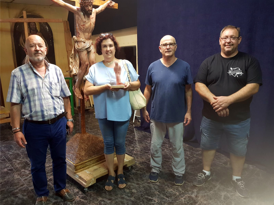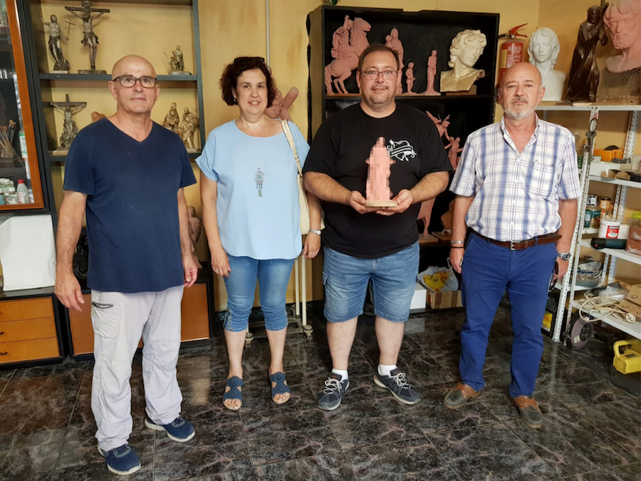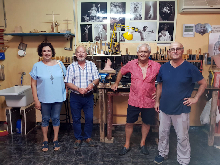 Anteayer, los presidentes de las tres agrupaciones (Francisca Sáez, Alfonso Almagro y Gumersindo Hernández) se acercaron al taller del artista junto al hermano mayor pudiendo observar in situ su evolución. Las obras, que por el momento no podemos desvelarlas así como sus nombres, se presentarían en los días previos a la Semana Santa de 2021 sumando así al Niño Jesús Minero, Ángel Custodio de la Sierra Minera y a San Juan Evangelista Niño.