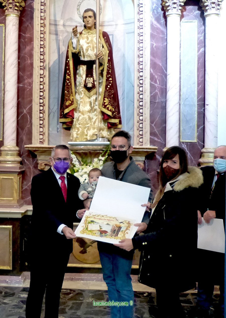 Martín Blázquez Castejón, un bebé de tan sólo tres meses de edad, ha sido el primero en recoger el diploma que lo acredita como nuevo sanjuanista, para después tocarle el turno a Daniela Castro Belmonte, que tiene nueve meses y que forma parte de la saga procesionista del actual presidente, Pedro Belmonte. Esta trayectoria procesionista con San Juan la inició su padre, Diego Belmonte, en los años cincuenta del pasado siglo con la agrupación que después se extinguió y volvió a integrarse cuando se recuperó a principio de la década de los noventa, siguiendo después este árbol cofrade su hijo, nietos y, ahora, dos de los biznietos.