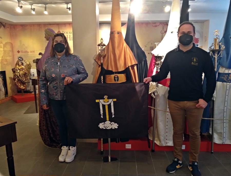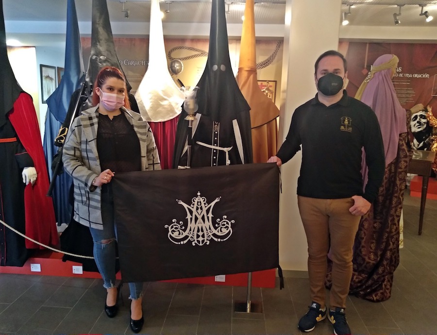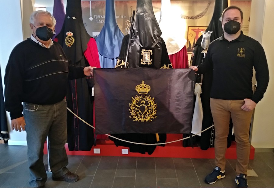 - En las imágenes, podemos ver a Jose Antonio Martínez, director de esta banda e impulsor de esta iniciativa, haciendo entrega de las banderas en el museo de la Semana Santa Minera de La Unión, a los directivos de las diferentes agrupaciones, siendo estos, Paqui Sáez (Agrupación de María Magdalena), Alfonso Almagro (Agrupación de la Santísima Virgen de la Caridad) y María Casanova (Agrupación de la Santísima Virgen de la Soledad).