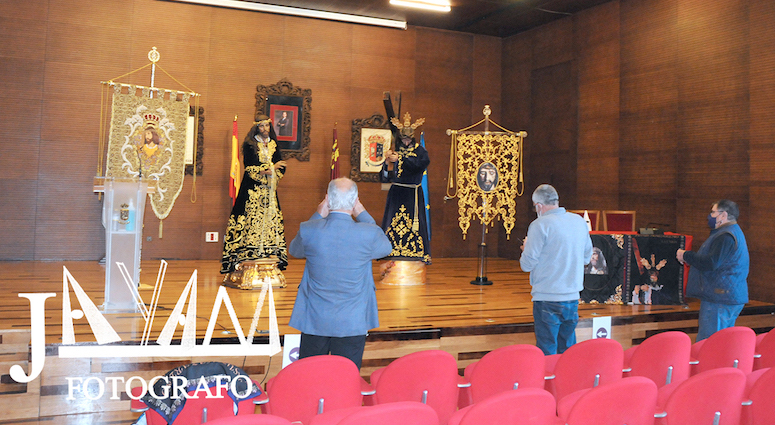 Los vecinos han podido acudir durante la mañana de hoy al salón de actos del Ayuntamiento para contemplar juntas las imágenes del Cristo de la Divina Misericordia de Cartagena y del Jesús Nazareno de La Unión, que esta Semana Santa se han hermanado.