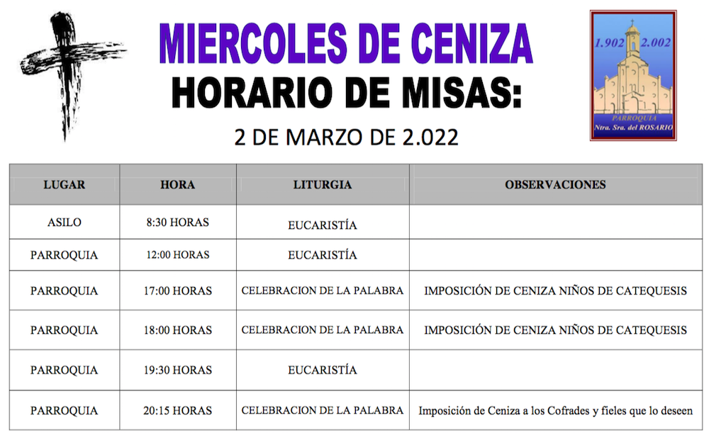 Con 'La llamada' de esta tarde, a las 20 horas ante la fachada de la Casa del Piñón, comienza hoy la cuaresma y la cuenta atrás hacia el regreso de las procesiones. Además, ofrecemos los horarios de las misas en esta jornada en la parroquia de Nuestra Señora del Rosario, iglesia, que al igual que el resto, recupera el pleno aforo de asistentes. Respecto a la tradicional ceniza de hoy, desde la Diócesis de Cartagena se indica que hay que adaptarse a la situación pandémica y que se impondrá sin llegar a existir contacto físico, como ya sucedió el pasado año.