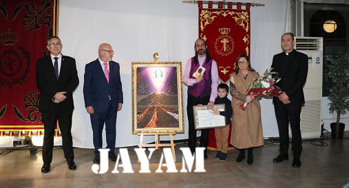 Iván Ruipérez explicó que de la boca del volcán surge un haz de luz, “un torbellino con las almas de las personas que hemos perdido por la pandemia y que deben procesionar ahora con nosotros”, dijo. Explicó que tuvo una primera idea, que luego desterró para buscar una línea artística distinta a sus antecesores en este terreno, optando por el volcán antes de que se produjera la erupción de Cumbre Vieja de La Palma (Canarias), del cual salen tres ríos de lava, teniendo las dos primeras distinto color con respecto a la tercera, representando la incidencia de la pandemia en los dos primeros años y en la época actual. Acompañado por su esposa y su hijo, el artista y cofrade de Jesús Nazareno recibió la medalla de honor de la Cofradía del Cristo de los Mineros de manos del hermano mayor, Juan Antonio Pérez Campillo.