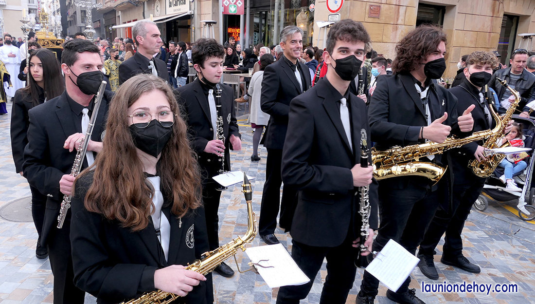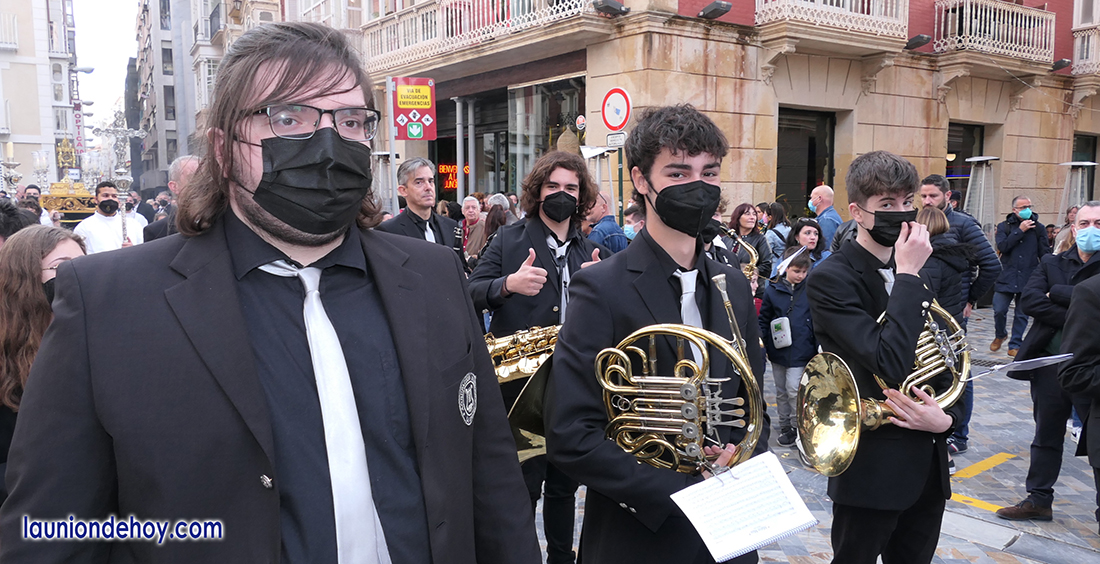 Los componentes de la Agrupación Musical La Unión estuvieron en el Viernes de Dolores de Cartagena y esta mañana estarán en la procesiones de Portmán (por la mañana) y del Domingo de Ramos californio (por la tarde). Su música repetirá en la ciudad portuaria miércoles y viernes, mientras que Jueves Santo harán doblete con La Unión y Cabo de Palos.