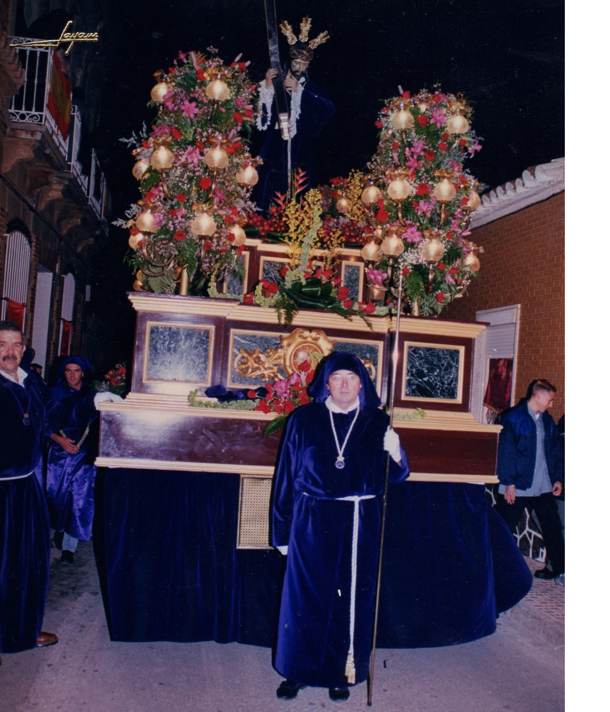Nacido en 1957, es una persona conectada a la Semana Santa desde bien joven, pues, junto a otros jóvenes, sacó en los años setenta del pasado siglo una procesión con tres tronos cuando los desfiles pasionarios no se celebraban. "Se habían producido dos intentos previos para reactivar las procesiones, pero no fructificaron. Sin embargo, en esa ocasión, siendo párroco don Cristóbal, se consiguió coincidiendo con la fundación del centro parroquial juvenil, del que yo fui presidente. Este grupo tuvo mucho empuje y, tras los ensayos en el asilo de las hermanitas de los huérfanos de Carmelitas, pusimos en la calle a la Virgen del Rosario, a Jesús Nazareno y al Cristo de los Mineros un Jueves Santo. Salimos unos doscientos chavales de entre 14 y 16 años de edad", recuerda, añadiendo que localizaron dos tronos antiguos a ruedas que rehabilitaron para la ocasión (el tercero era el que tenía la patrona) y que el mentor fue Asensio Sáez, encargado también de crear los montes florales. No hubo un 'año siguiente' para aquella procesión, "porque faltó dinero", explica.