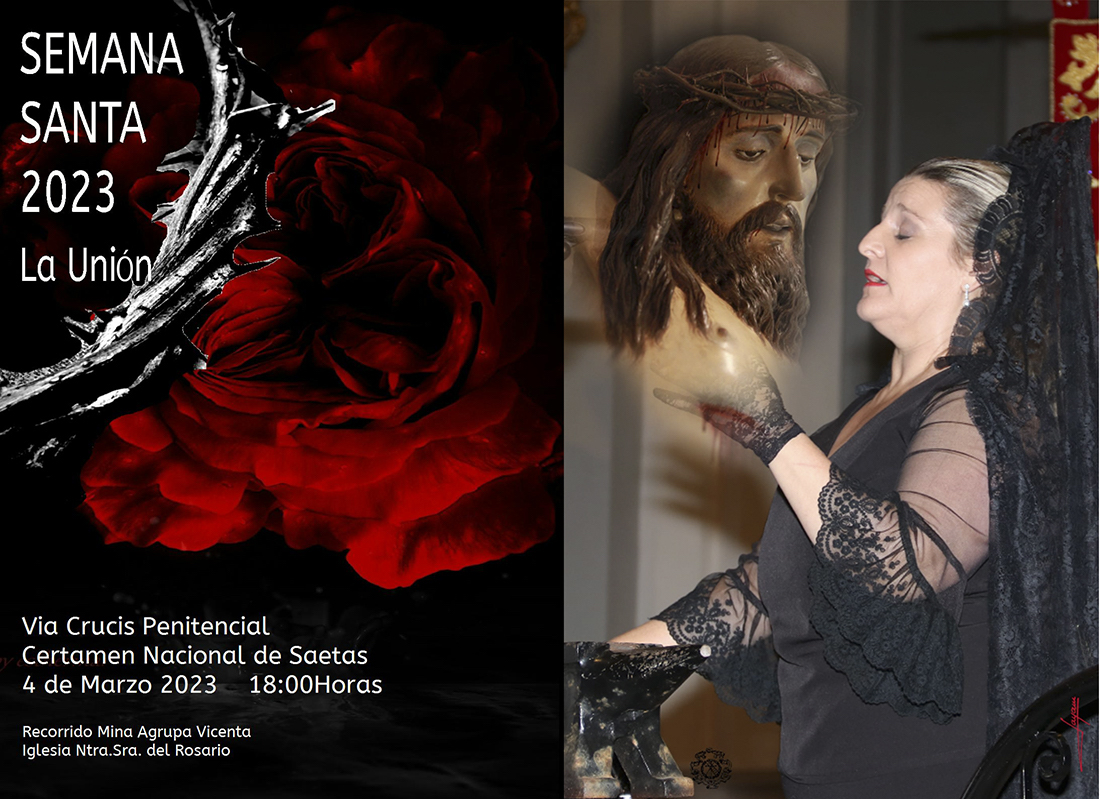 La Final del XXXII CONCURSO NACIONAL DE SAETAS “CIUDAD DE LA UNIÓN”, tendrá lugar a las 16.00 horas del día 4 de marzo de 2023, durante los puntos indicados en el recorrido del Vía Crucis que sale de la Tolva de la Mina Agrupa Vicenta. Los concursantes que resulten premiados deberán cantar obligatoriamente al paso del traslado del Cristo de los Mineros hacia la Iglesia de los Dolores en el Garbanzal celebrado el día 5 de marzo de 2023, en los puntos que la organización determine.