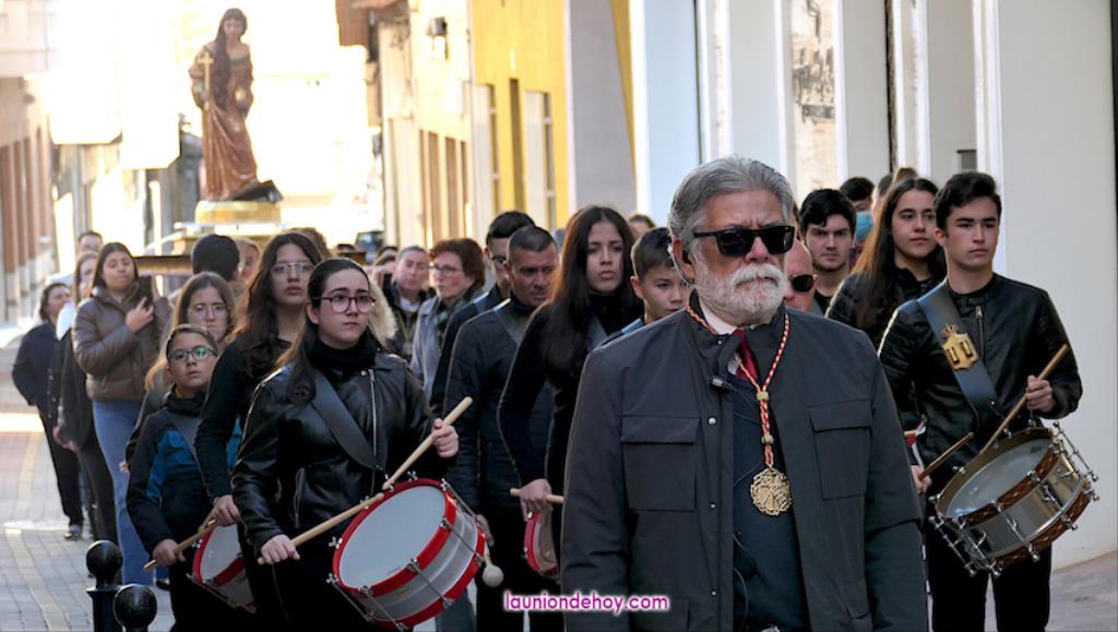 La mañana del domingo acogió el estreno de tres comitivas de procesionistas acompañando a las imágenes de Jesús Minero, San Juan y María Magdalena en 'edad infantil', cuyo destino era presidir el acto de presentación del cartel cofrade de este en la Casa del Piñón. Esta novedosa actividad, llevada a cabo a golpe de tambores, logró el objetivo paralelo de llamar la atención de los vecinos sobre la inmediatez de los desfiles pasionarios. GALERÍA DE FOTOS (pinchar aquí)