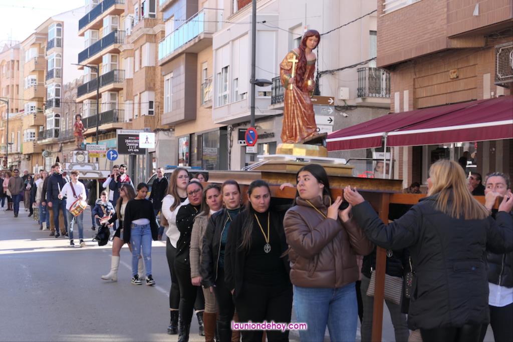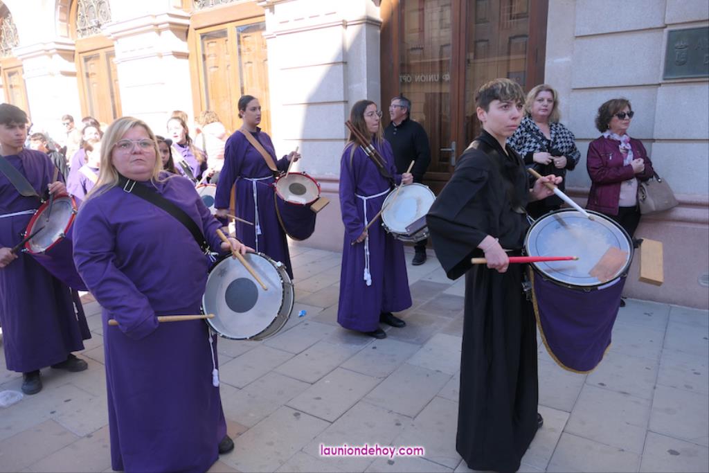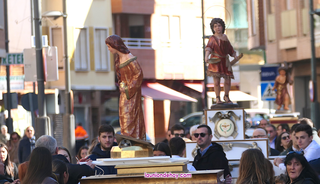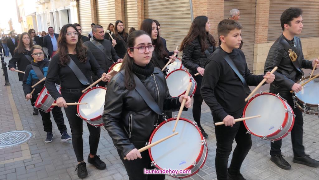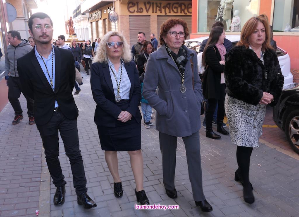 Esta comitiva cruzó la calle Mayor, por la que a través de dos calles laterales, aparecieron María Magdalena niña y el Nino Jesús Minero, ambos con grupos de tambores y la primera con los presidentes de las agrupaciones de la Magdalena y de la Caridad. Una comitiva procedía de la iglesia del Rosario y otra había salido del Museo de la Semana Santa.