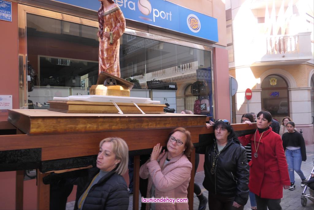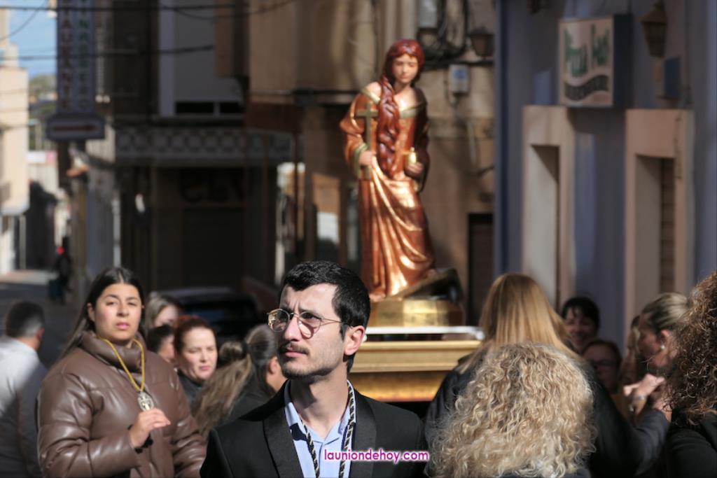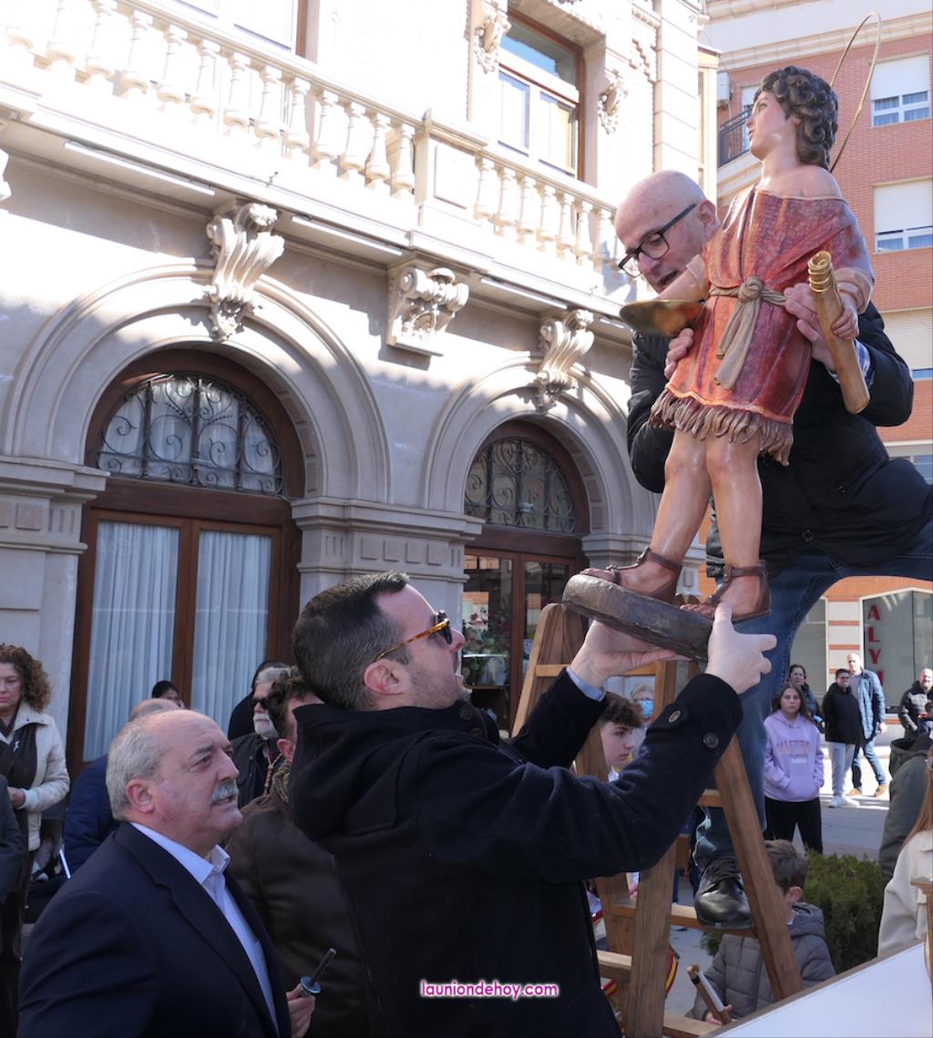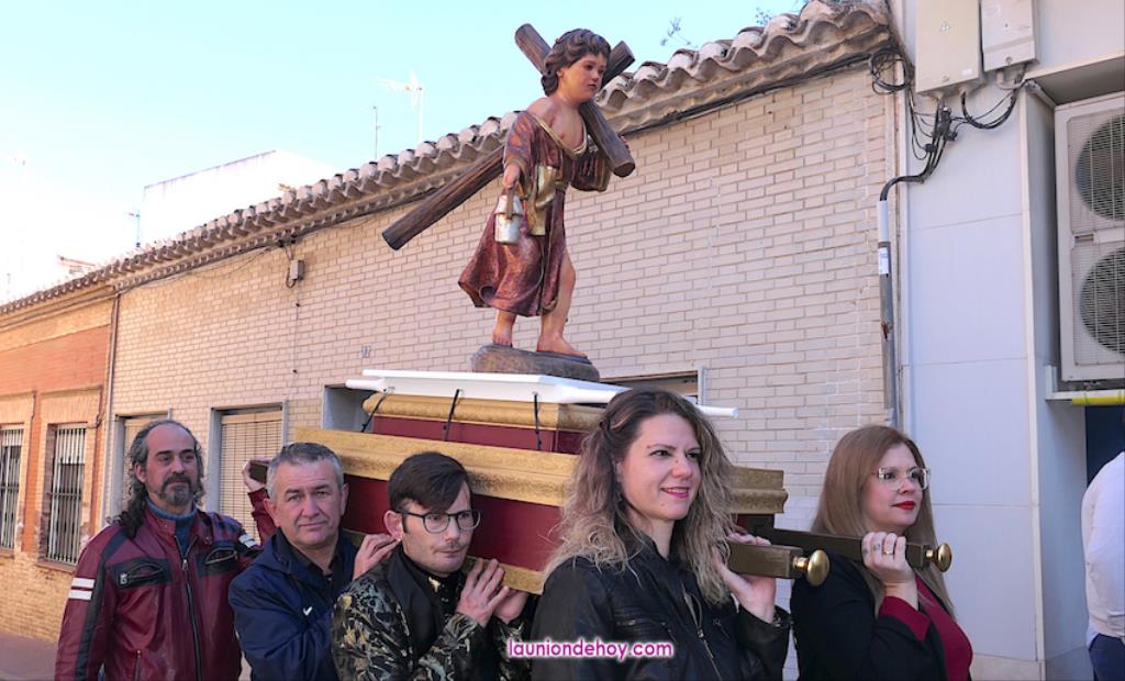 San Juan niño salió desde la fundición donde se encuentra el taller de trabajo del escultor Galo Conesa, autor de las tres tallas trasladadas ayer y que formó parte de esta comitiva en compañía del presidente de la agrupación sanjuanista, de la esposa del anterior hermano mayor de la cofradía y del actual, quien más adelante pasó a acompañar al grupo nazareno de 'toda su vida' con la imagen del Jesús Minero.