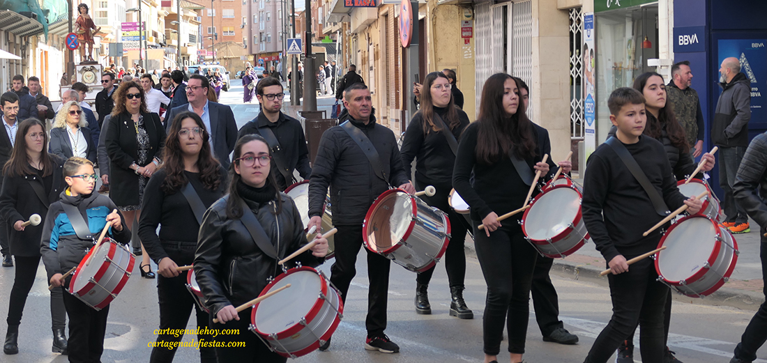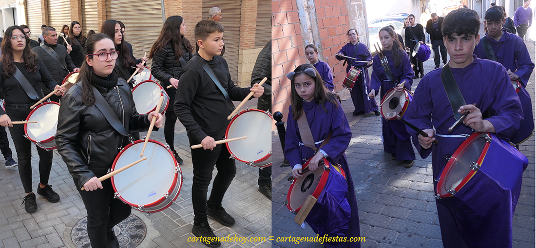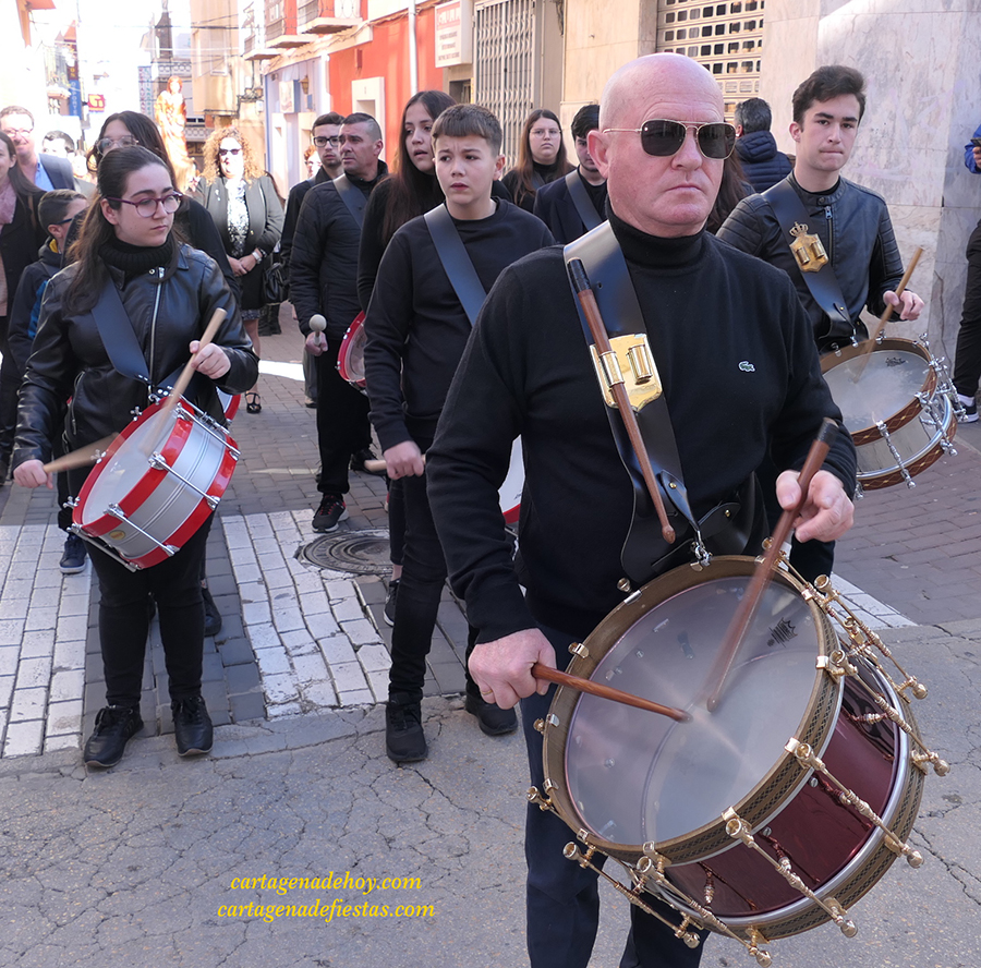 Ahora han surgido dos más, con lo que son cinco los tercios que llevarán el paso a golpe de tambor unionense. Francisco Ibáñez es quien está al frente de la coordinación del grupo tamborista de la Magdalena, mientras que Laura Fernández Navarro 'capitanea' a los tambores nazarenos, destacando en ambos casos la masiva presencia de gente joven.