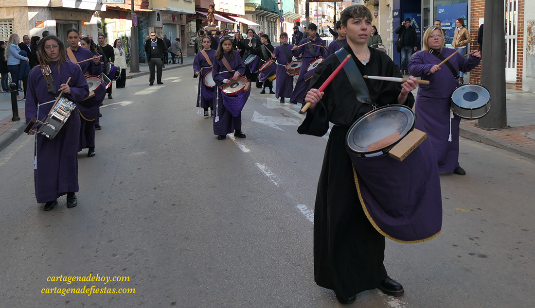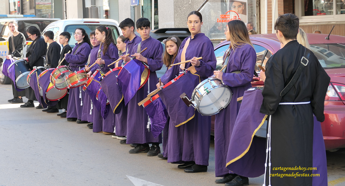 La familia procesionista suena más con la incorporación de dos grupos nuevos de tambores, que se suman al más antiguo, la banda de cornetas y tambores 'Virgen de la Caridad', que acompaña a esta agrupación el Jueves Santo y a la Soledad en la noche siguiente, y al que creó la agrupación del Cristo de los Mineros.