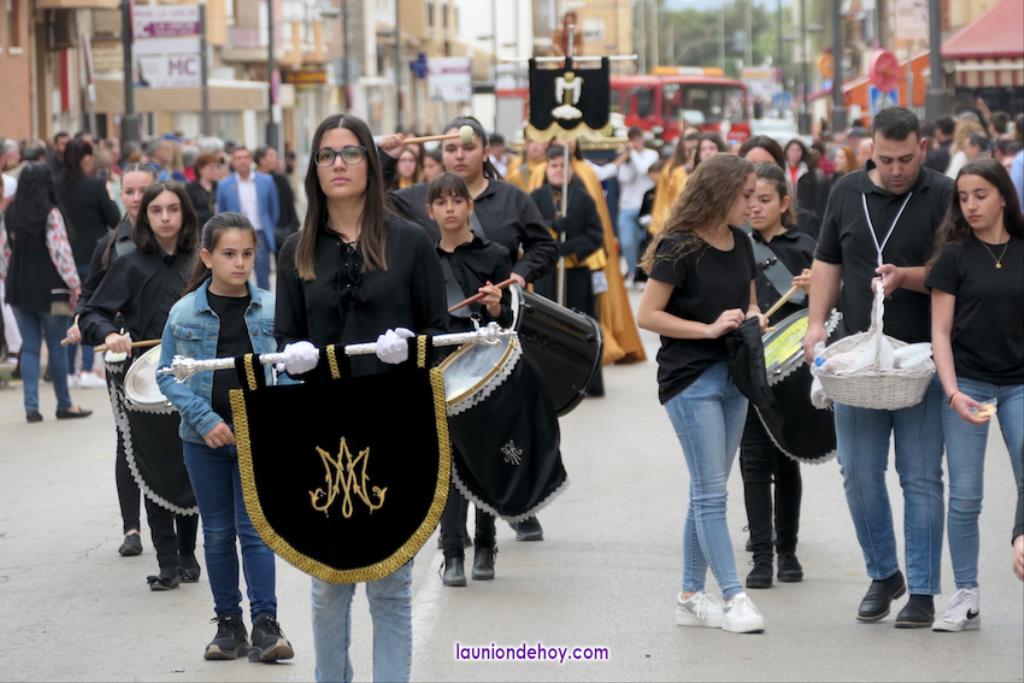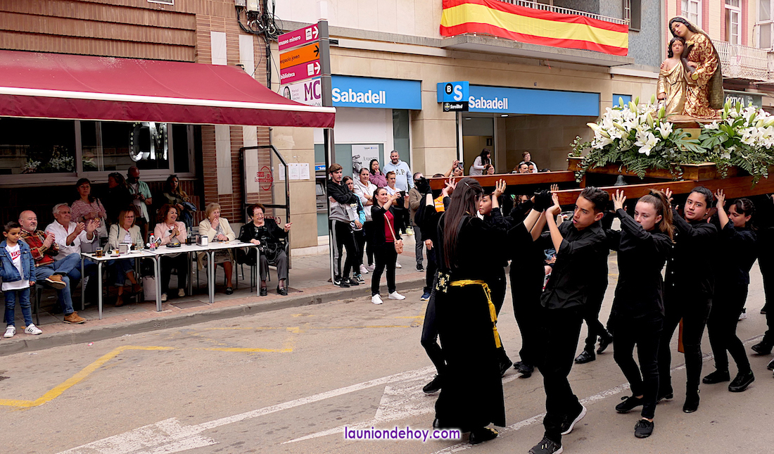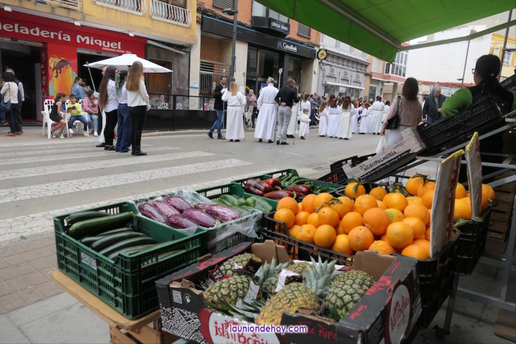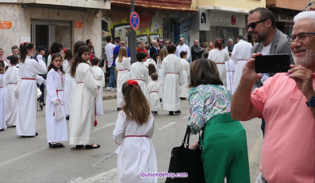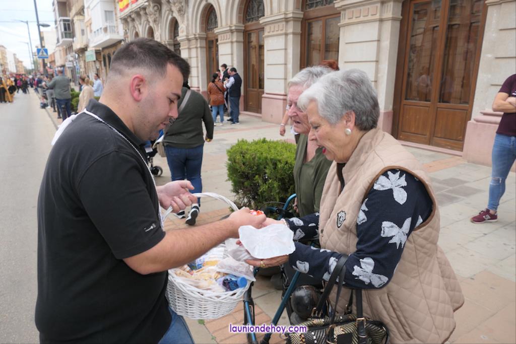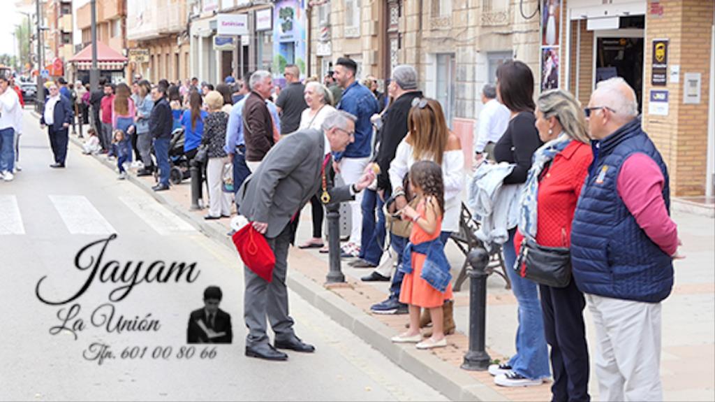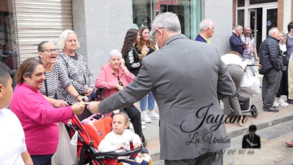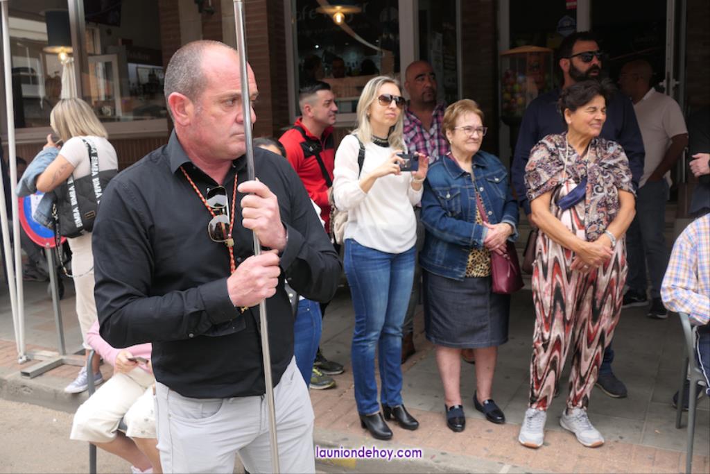 Ha sido bastante el público que ha presenciado la jornada, muchos de ellos captando infinidad de fotos con sus móviles, y recibiendo de los participantes en el desfile monas, crespillos y caramelos, además de postales. La procesión ha cruzado parte de la calle Mayor para después dirigirse a la iglesia del Rosario, donde han entrado los tronos, siendo bendecidos por el sacerdote Ginés Luis Vicente.