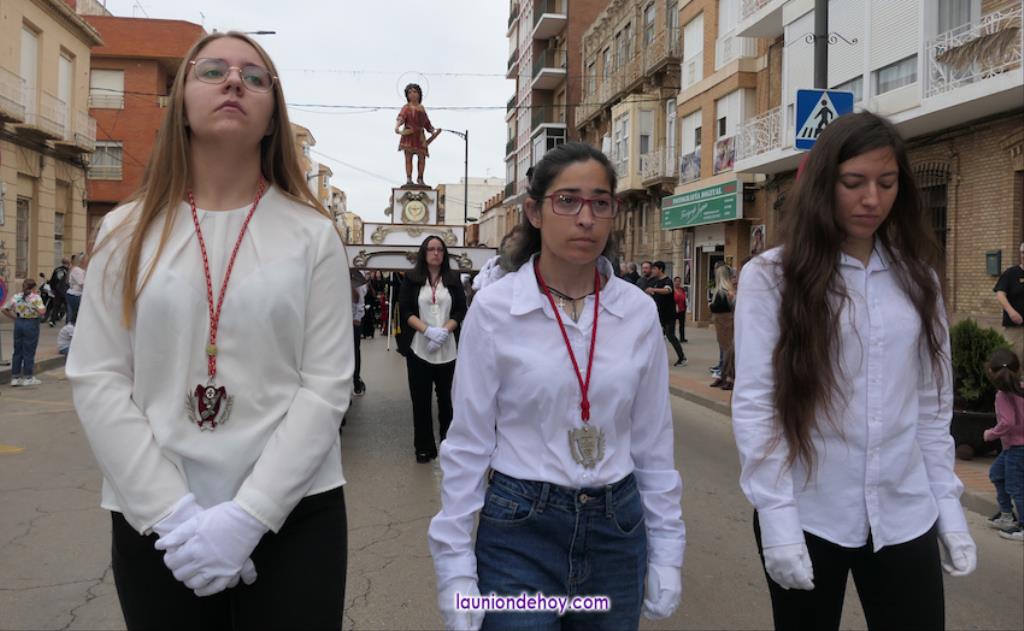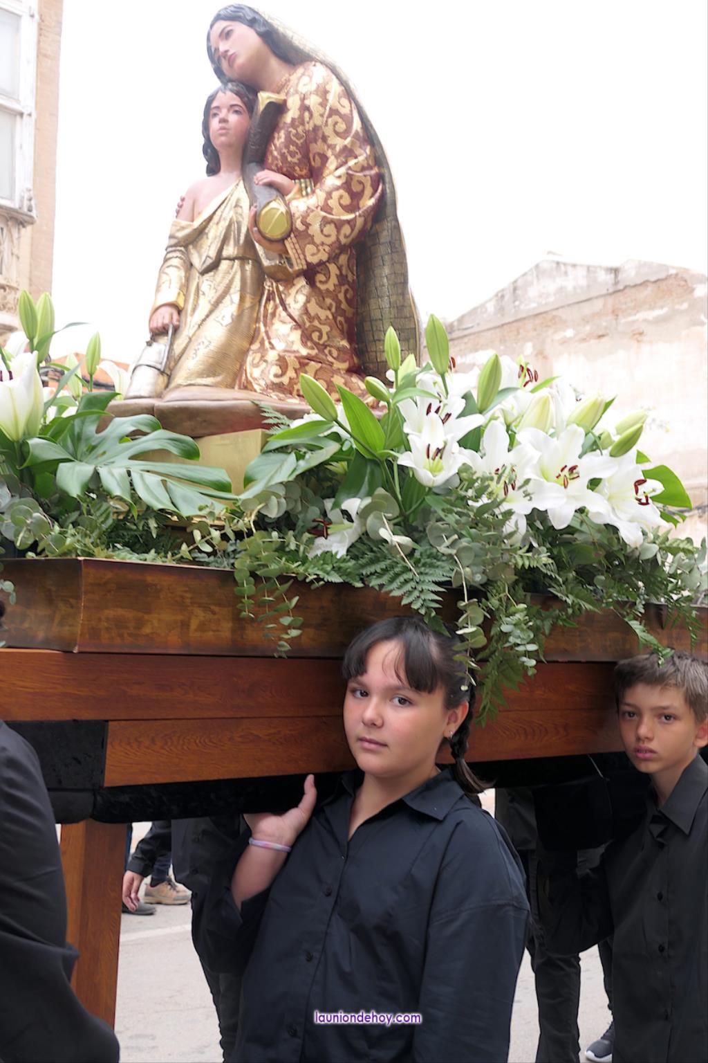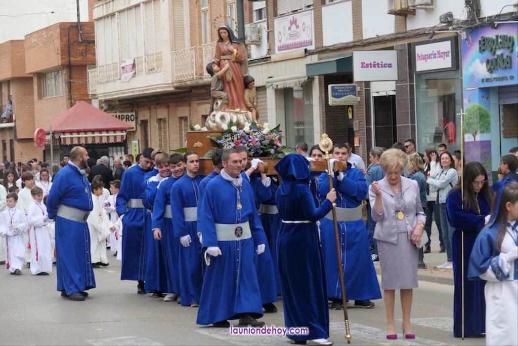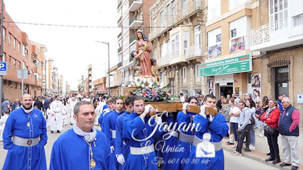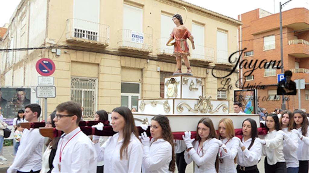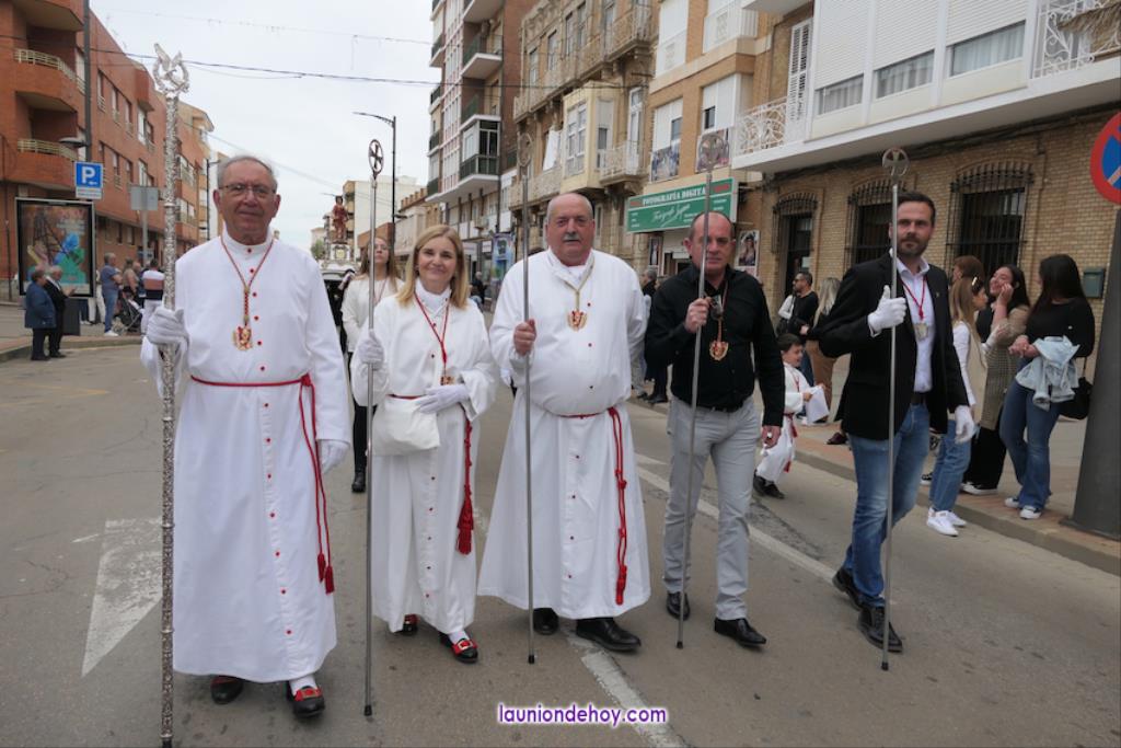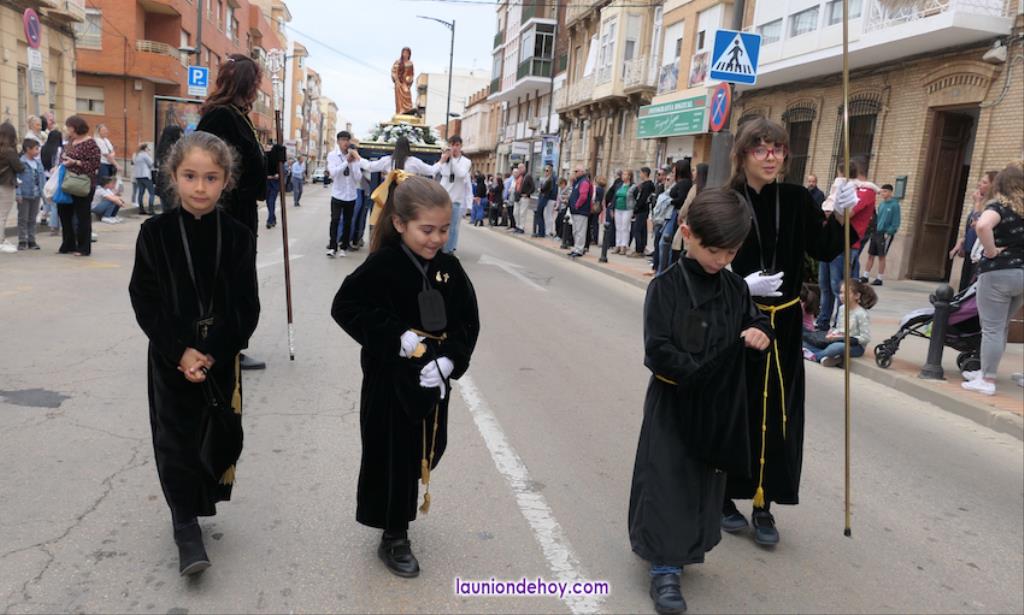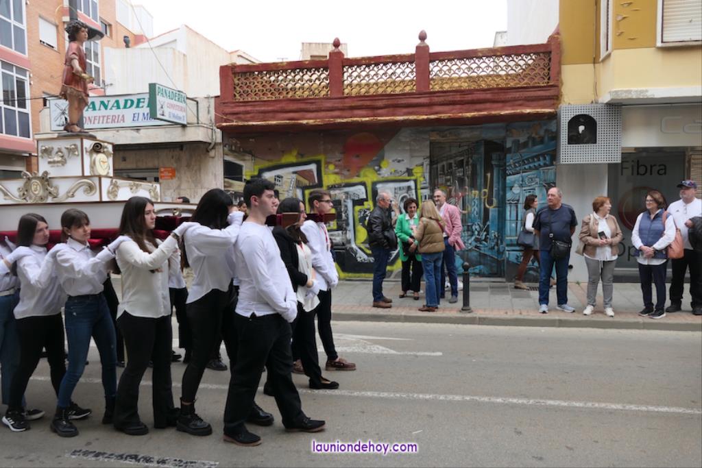 Ha sido bastante el público que ha presenciado la jornada, muchos de ellos captando infinidad de fotos con sus móviles, y recibiendo de los participantes en el desfile monas, crespillos y caramelos, además de postales. La procesión ha cruzado parte de la calle Mayor para después dirigirse a la iglesia del Rosario, donde han entrado los tronos, siendo bendecidos por el sacerdote Ginés Luis Vicente.