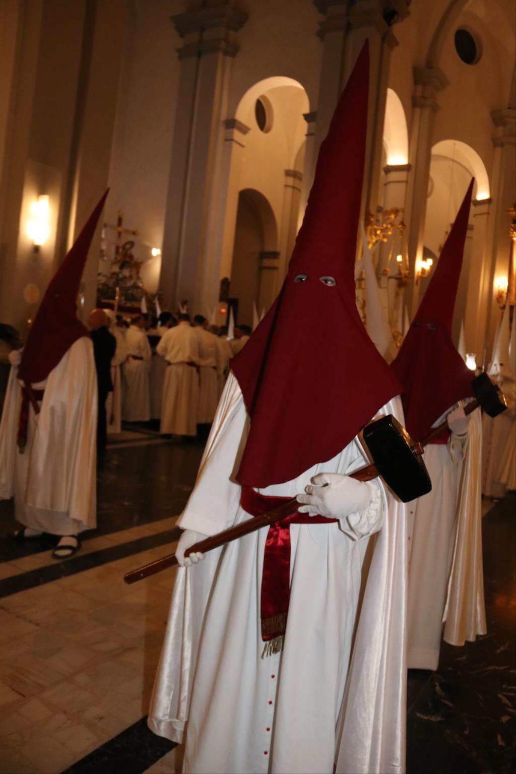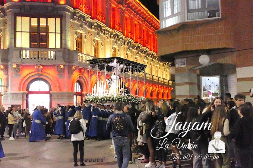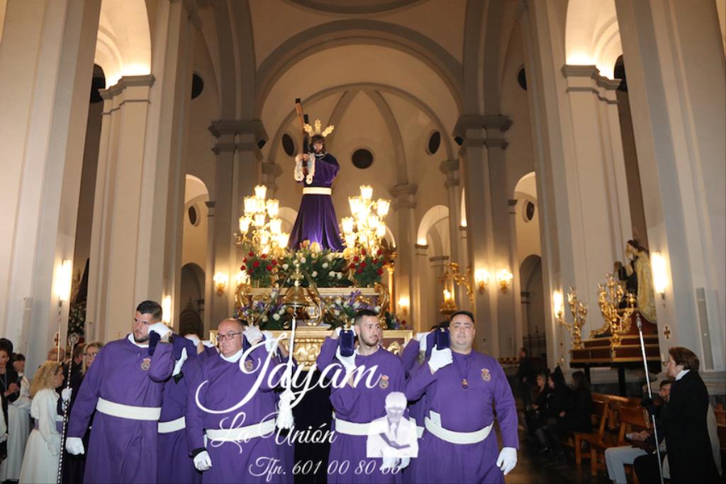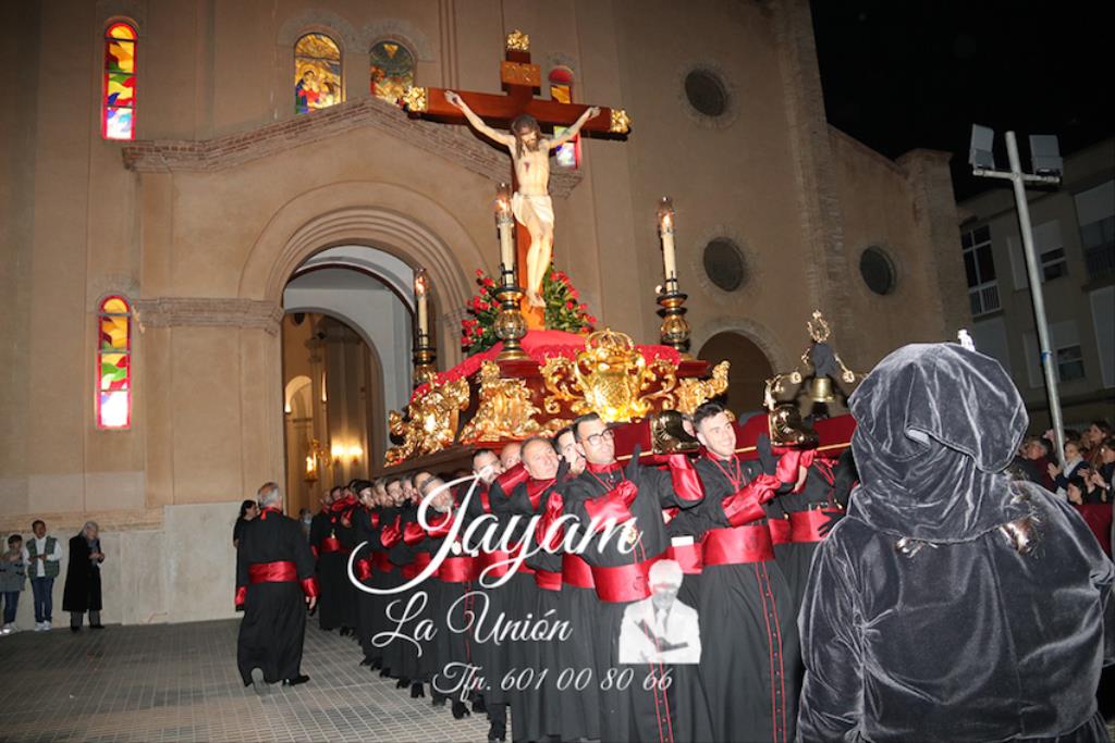 Cerró la procesión el titular de la misma, el Santísimo Cristo de los Mineros, talla de Jerique, también llevado a hombros y que al final del recorrido protagonizó un emotivo encuentro con su madre Dolorosa ante la fachada de la iglesia.