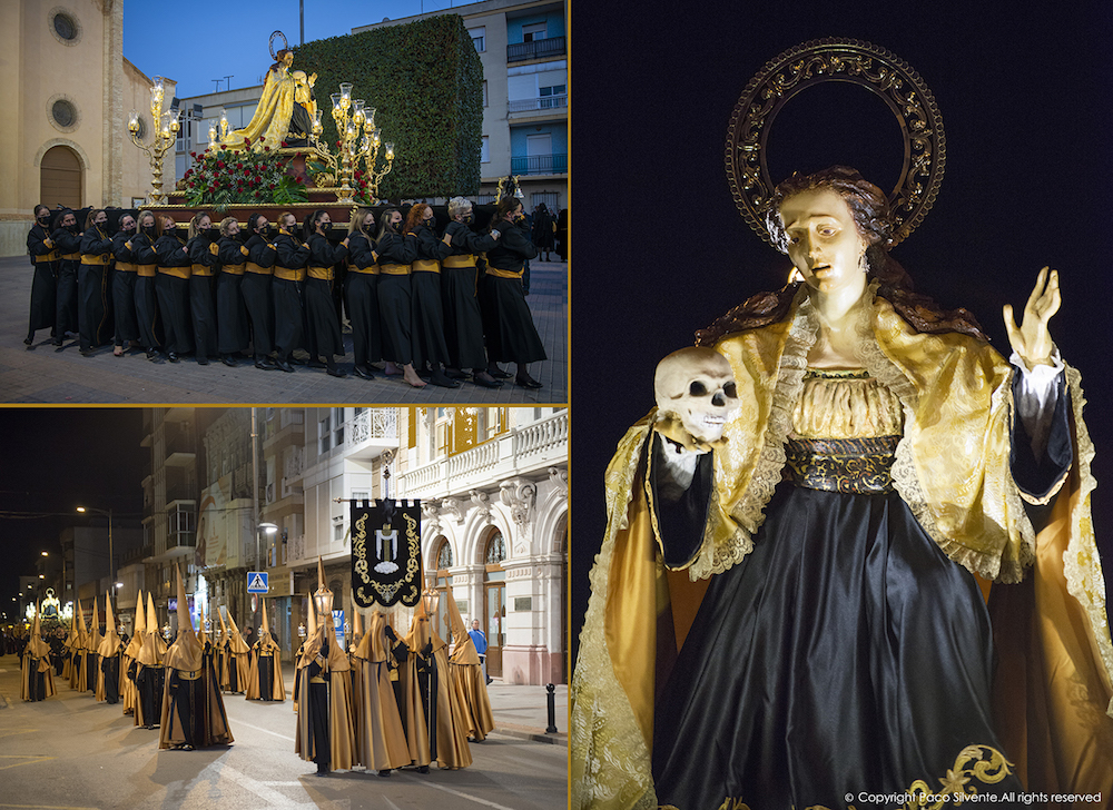 Viernes Santo y otro año más, las mujeres portapasos de la Agrupación de María Magdalena no realizarán ni una sola parada esta noche, en la 'Procesión del santo entierro', durante la subida por la dura calle Quevedo de La Unión, una vía de la que hay constancia que ya formaba parte de los desfiles pasionarios unionenses a finales del siglo XIX.