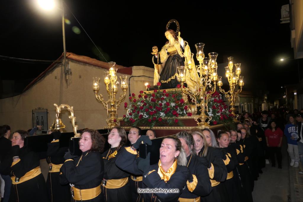 Es el grito de arenga que van pronunciando las damas portapasos de la Magdalena cuando suben la empinada vía sin que el trono toque el suelo, pero esa subida ofrece una perspectiva especial para contemplar toda la ‘Procesión del entierro’ y llamativos detalles en las agrupaciones que avanzan paso a paso a golpe de tambor. GALERÍA DE FOTOS (pinchar aquí)