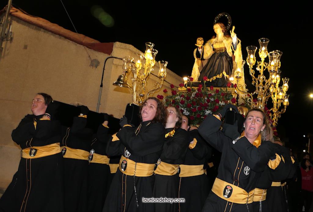 El orden en el paso, artísticos hachotes y las bandas de música propias de cada colectivo son otros elementos atractivos del cortejo pasionario, cuya crónica global se puede leer en otro artículo de este diario. Por cierto, al respecto de la pregunta del encabezamiento, que efectúa una de las costaleras que va en la punta delantera de la vara, la respuesta la ofrece todo el grupo de damas portapasos: “¡La Magdalena!”. En este terreno, también reseñar que el trono de la Dolorosa va llegado por un grupo mixto de ambos sexos.