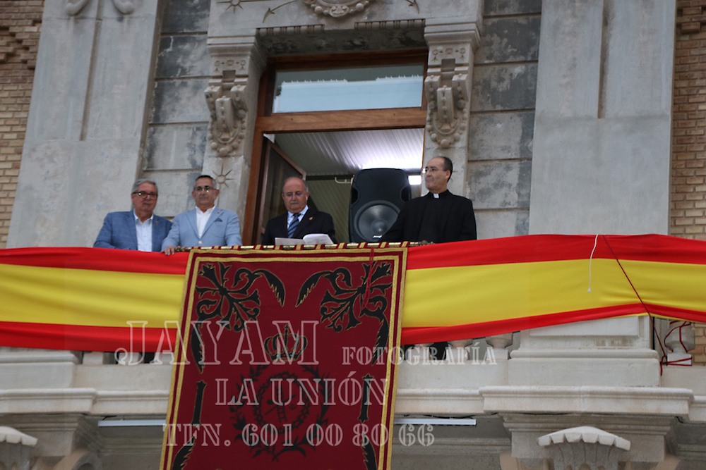 Por supuesto, además de un expresivo "¡La Unión, cuánto te quiero!", no faltaron los vivas lanzados y sus réplicas entre los asistentes, siendo el colofón el himno de España a la vez que al fachada de la Casa del Piñón se convertía en una gran bandera nacional entre aplausos.