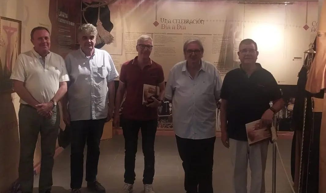 José Cortado Balsalobre, hermano mayor de la Cofradía del Santísimo Cristo de los Mineros de La Unión ha recibido en el Museo de la Semana Santa Minera a miembros de la junta directiva de la Cofradía del Cristo de los Pescadores de Cabo de Palos, entre los que figuraba su hermano mayor, Pedro Solano.