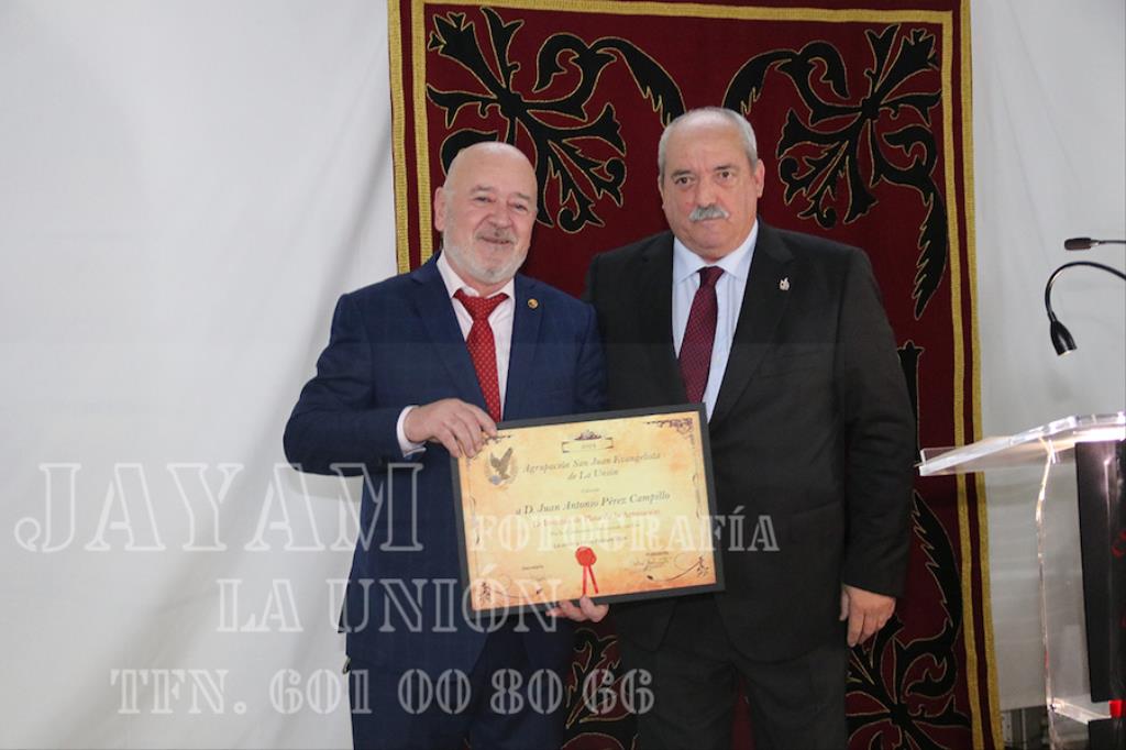 Los presidentes de las agrupaciones del Santísimo Cristo de Los Mineros, de la Santísima Virgen de la Caridad, de la Santísima Virgen de la Soledad, de María Magdalena, de San Juan Evangelista, de la Santísima Virgen del Rosario en sus Misterios Dolorosos (La Dolorosa) y de Nuestro Padre Jesús Nazareno hicieron entrega del nombramiento de ‘Cofrade Insigne’ y de la entrega de la medalla de la agrupación a diversos hermanos, en reconocimiento a la labor de entrega y trabajo dentro de sus respectivos colectivos procesinistas. El presidente de San Juan entregó el reconocimiento a doce portapasos que durante 25 años no han faltado ni un sólo día a portar a San Juan.