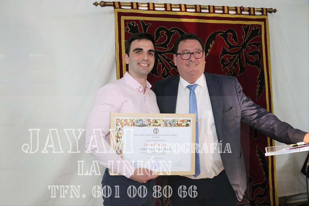 El hermano mayor de la cofradía, José Cortado Balsalobre, estuvo acompañado en la presidencia de la cena-gala, por el alcalde de La Unión, Joaquín Zapata García, y el conciliario de la hermandad, el reverendo Ginés Luis Vicente, así como todas las fuerzas políticas del municipio con presencia en el pleno: PP, PSOE, VOX y DLU.