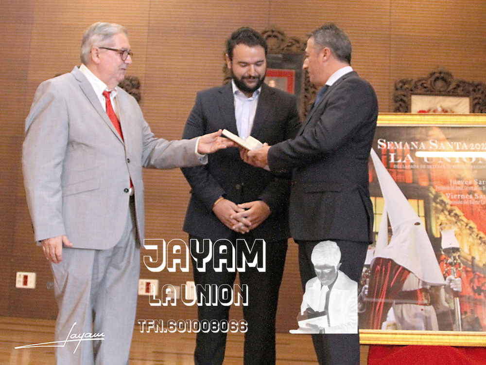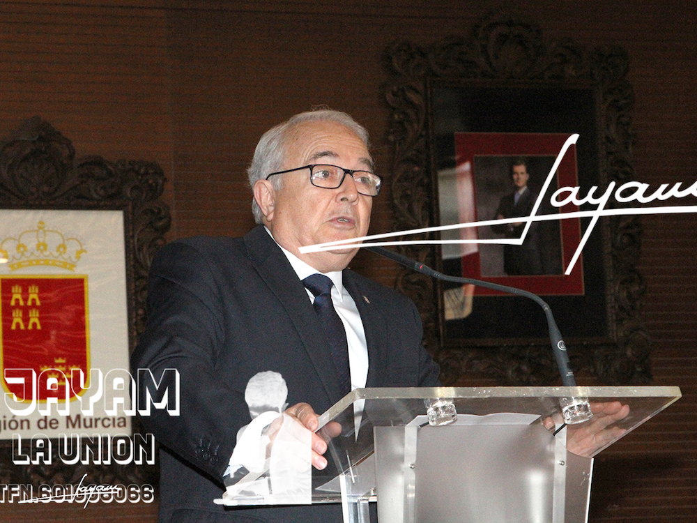 Tras el uso del atril por parte de la máxima representación municipal y cofrade, José Cortado ha procedido a la entrega de la Medalla de Honor de la Real e Ilustre Cofradía del Stmo. Cristo de los Mineros, al autor del Cartel, por la realización del mismo y por la merecida e incansable ayuda que ha desarrollado durante décadas en la historia de las procesiones unionenses.