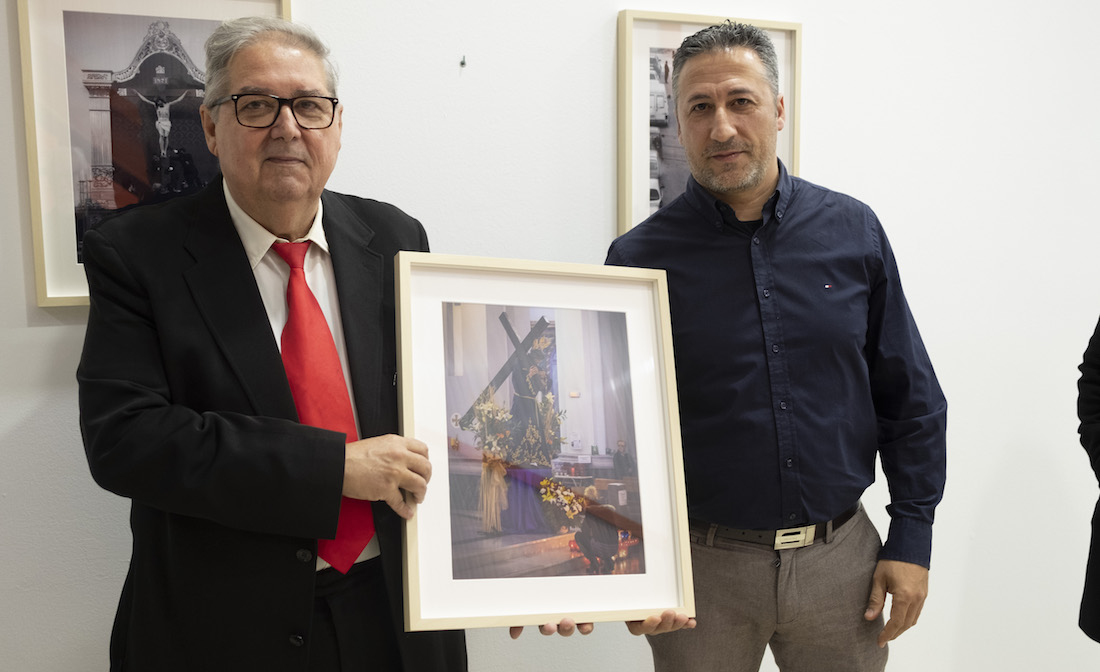 La Cofradía del Cristo de los Mineros inaugura, bajo el título 'Quod non videmus', una muestra de Paco Silvente en la sala de exposiciones del Ayuntamiento de La Unión, donde se podrá visitar de lunes a viernes por la mañana hasta el 29 de marzo. El fotógrafo, jugando con la traducción de la frase latina, quiere que el espectador contemple aquellos momentos que en ocasiones no son vistos en las procesiones. En la imagen adjunta se le observa junto al hermano mayor cofrade, José Cortado.
