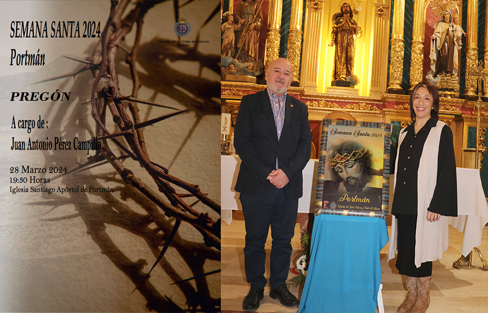 En la foto se observa a Pérez Campillo en la iglesia donde ofrecerá el pregón y en la que estuvo el pasado domingo con motivo de la presentación del cartel de la Semana Santa de Portmán, obra de Carmen María Meroño 'Jayam'.