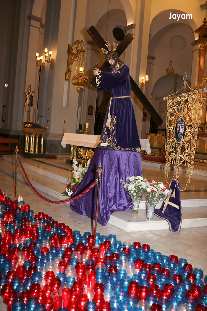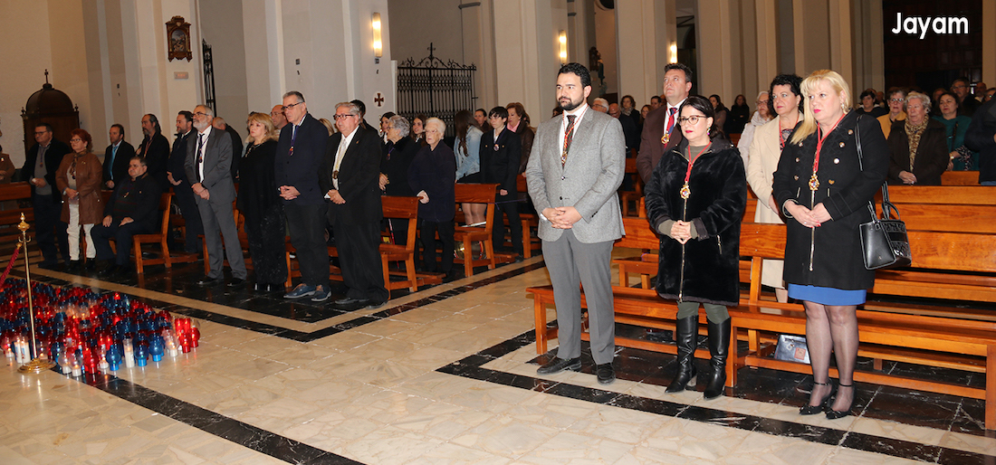 La misa ha contado con el alcalde, Joaquín Zapata, y una representación de su equipo de gobierno con José Cortado, como hermano mayor de la Cofradía del Cristo de los Mineros, al frente de la amplia representación procesionista en la iglesia, especialmente de la agrupación que tiene a Jesus Nazareno como titular. La talla se ha ubicado junto al altar y frente a un 'mar de velas'.
