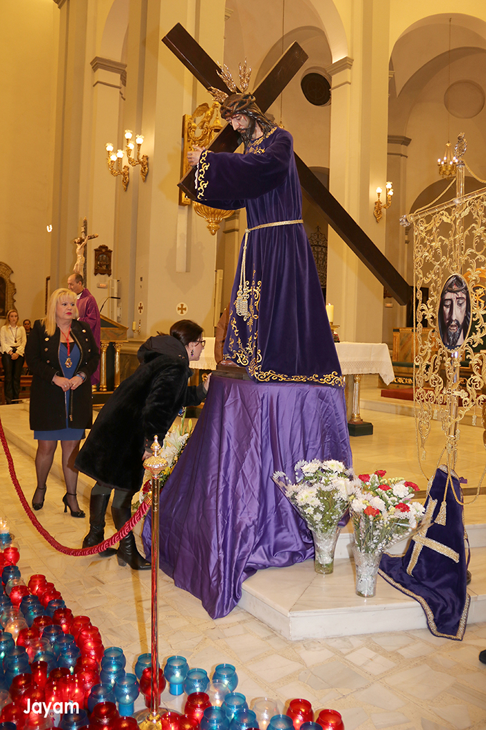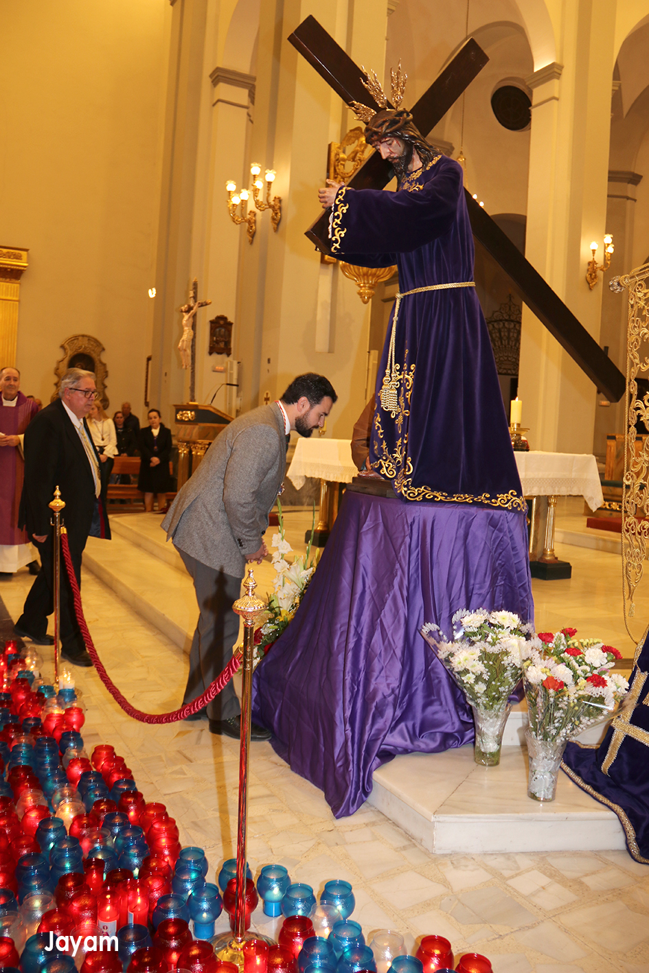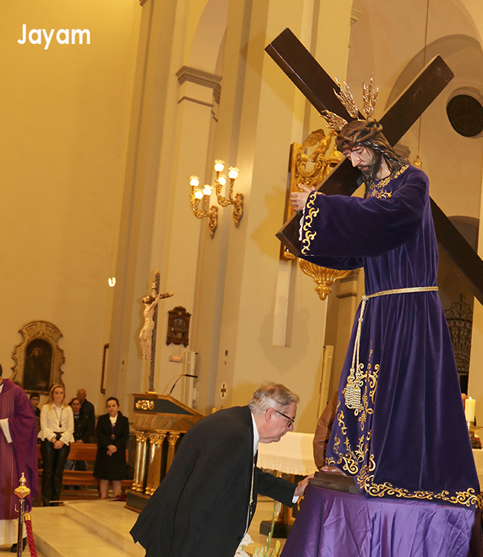 El templo de Nuestra Señora del Rosario ha estado diez horas hoy abierto con motivo del besapié a la imagen creada por el artista José Rigal que representa el tránsito de Jesús por el camino hacia el Monte del Calvario, siendo bastantes las personas que se han acercado a mostrarle su devoción. Por la noche ha tenido lugar la eucaristía, con posterior besapié. En la foto, el cronista oficial de La Unión, Gonzalo Wandosell.