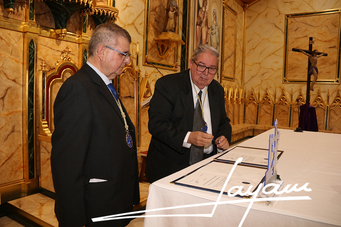 El documentación de vinculación fraternal ayer fue firmado por los respectivos hermanos mayores, Pedro Solano y José Cortado. El mar y la mina, dos actividades de sufrimiento en sus trabajos, quedan hermanados para siempre. Antes del acto tuvo lugar la bnedición de la nueva imagen de Santiago de Cabo de Palos, que se estrenará en la procesión de los pescadores del Jueves Santo.