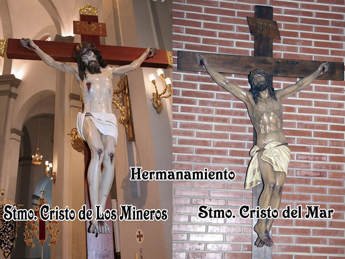 Las cofradías del Cristo de los Pescadores de Cabo de Palos y del Cristo de los Mineros de La Unión llevaron a cabo ayer tarde el primer capítulo de su hermanamiento en la iglesia costera de Santa María del Mar, que también será refrendado en el salón de actos del ayuntamiento unionense el próximo domingo.