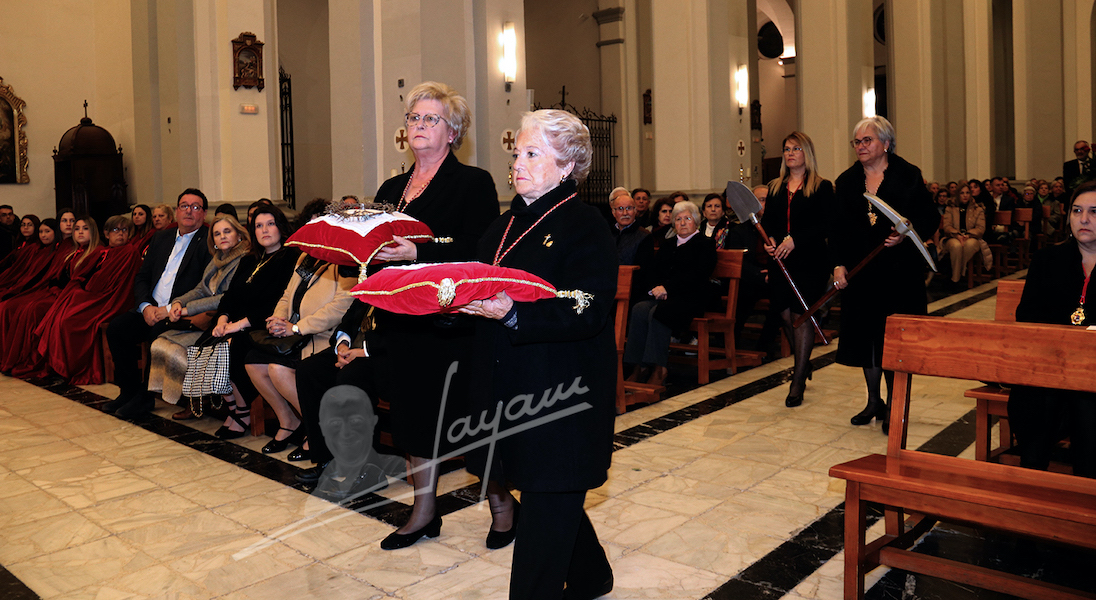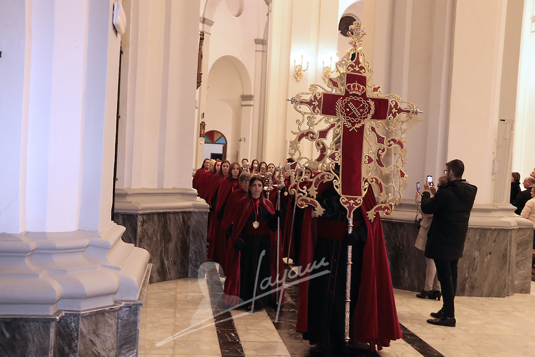 Portapasos y penitentes desfilaron por el interior de la iglesia hasta llevar a la imagen al altar Mayor, desde donde el párroco, Ginés Luis Vicente, ofició la santa misa en su honor.