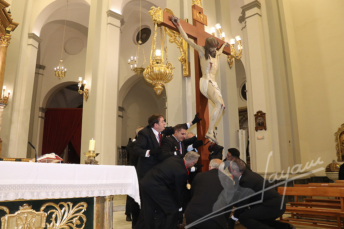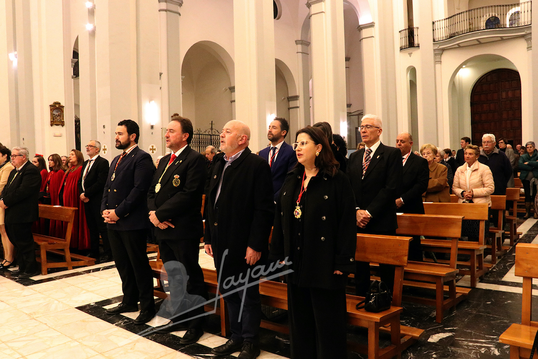 El templo de la Virgen del Rosario de la Unión ha acogido la procesión claustral del Santísimo Cristo de los Mineros, que ha comenzado con una procesión claustral, para después celebrar la misa en honor a la imagen, durante la que se han entregado los elementos mineros que salen en procesión, culminado la noche con una saeta dedicada por Sebas Andreu.